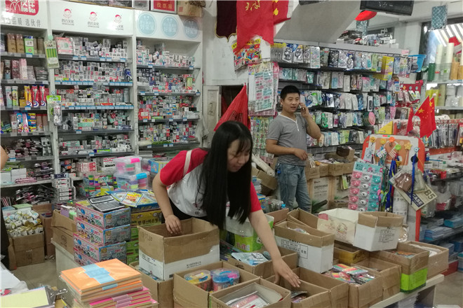 “再问问他们还需要什么,我们一起买回去。”活动组组长张梦函在文具批发市场的收银台前清点着教学用品,并将它们一件件打包。团队在6月26日下午的采办活动中共采办包括书包、笔记本、铅笔、篮球、羽毛球、乒乓球等在内的一批教学用品。“我们想尽己所能,让孩子们看到更加烂漫的世界。”队长陶蓓在前期工作总结中如是说。