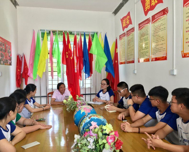 迎着6月29日的第一缕晨光,团队成员坐上颠簸的大巴,四百多公里、八个小时,从温婉江城芜湖奔波到大别山红色腹地太湖县北中镇,大家带着满满的期待与爱意翻山越岭来到“北中小学”。校长陈德文亲切接见了团队成员,在简单的安排住宿之后,校长与队员们进行了第一次对接。陈校长首先对成员们的到来表示了热烈地欢迎,随后分别从食宿、教学及少先队建设等方面与带队老师、队长进行了沟通交流,他向队员们强调要时刻谨记“安全第一”,他说道:“希望大家能扮演好老师和朋友的双重角色,教育学生,引导学生,为孩子们打开新的世界。我想,在我们双方的共同努力下,实践活动一定会顺利进行。”