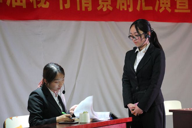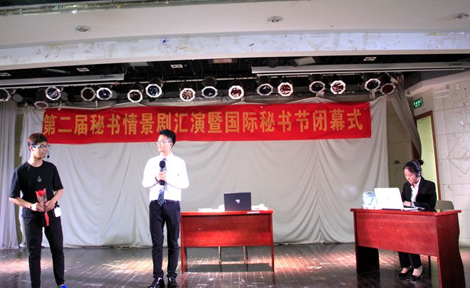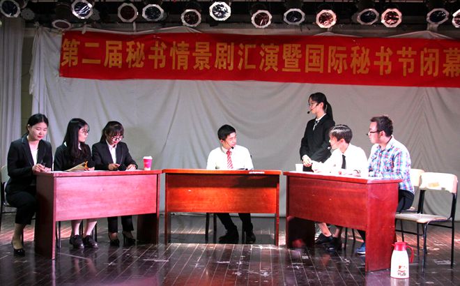 情景剧汇演中,以热播反腐大剧《人民的名义》为背景,展开对秘书人员工作环境的探索,情景剧《秘书的名义》创新采用“剧中剧”的形式演绎别样职场魅力;改编自《西游记》中人物角色形象,构筑穿越时空特色,《八戒的秘书之旅》以诙谐幽默的基调向同学们展现秘书工作特点;紧跟政策,励志团结,奋进拼搏,创造公司优秀业绩,《一路向前》以公司运营改革为切入点探究秘书形象、作用;应对变幻莫测的职场,敏捷灵活地处理各项事务,《秘观风云》剧组巧妙展示了秘书人如何面对和解决职场竞争问题;突破演绎,另类诠释,《非常男秘书》指出秘书的性别与能力的关系,强调只有真才实学才能有效辅助工作。