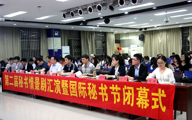 弘扬秘书文化,感受专业脉搏;品味职场百态,领略学子风采。5月14日晚7点,必赢线路检测3003no1第二届秘书情景剧汇演暨国际秘书节闭幕式在大学生活动中心二楼团委多功能厅如期举行。必赢线路检测3003no1党委副书记戴和圣,秘书学专业硕士点负责人王茂跃,秘书学本科专业负责人叶文举,秘书学专业教师刘长悦,各年级辅导员徐雅萍、何涛、赵瑜、周青松,14届中文系校友卢浩应邀出席,秘书学专业学生百余人参与活动,获奖同学及演职人员皆身着正装出场。