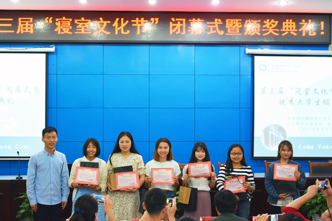 5月12日晚,必赢线路检测3003no1第三届寝室文化节闭幕仪式暨颁奖典礼在花津校区圆形报告厅二楼如期举行。必赢线路检测3003no1党委副书记戴和圣,团委书记杨穆龙,15、16级全体辅导员出席活动并担任颁奖嘉宾,学生会主席团全体成员及各项活动获奖选手到场参与闭幕式。