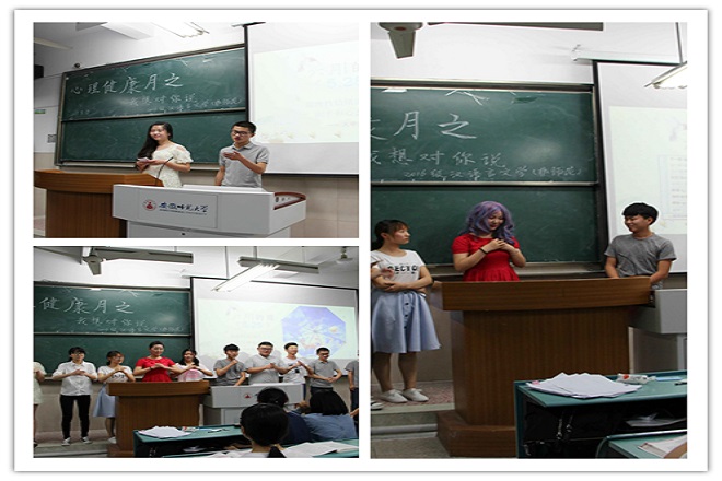 青春在运动中挥洒汗水,心灵在演绎中绽放光芒。5月17日下午,16级汉语言文学师范专业在明媚的阳光中举行了趣味运动会,开展“两人三足”、“踢毽子”等游戏,让同学们在运动中挥洒着汗水,在欢笑中拥抱着阳光。16级卓越语文班组织开展了心理健康剧表演,让台下的同学们以生动有趣的形式了解自身心理健康状况,通过反思,引起重视,解决自身心理健康问题。灼灼年华,青春正好,学院还在心理健康月期间,开展心理剧大赛,同学们用心撰写剧本,在参与表演中体味人生百态,感受心灵之美。