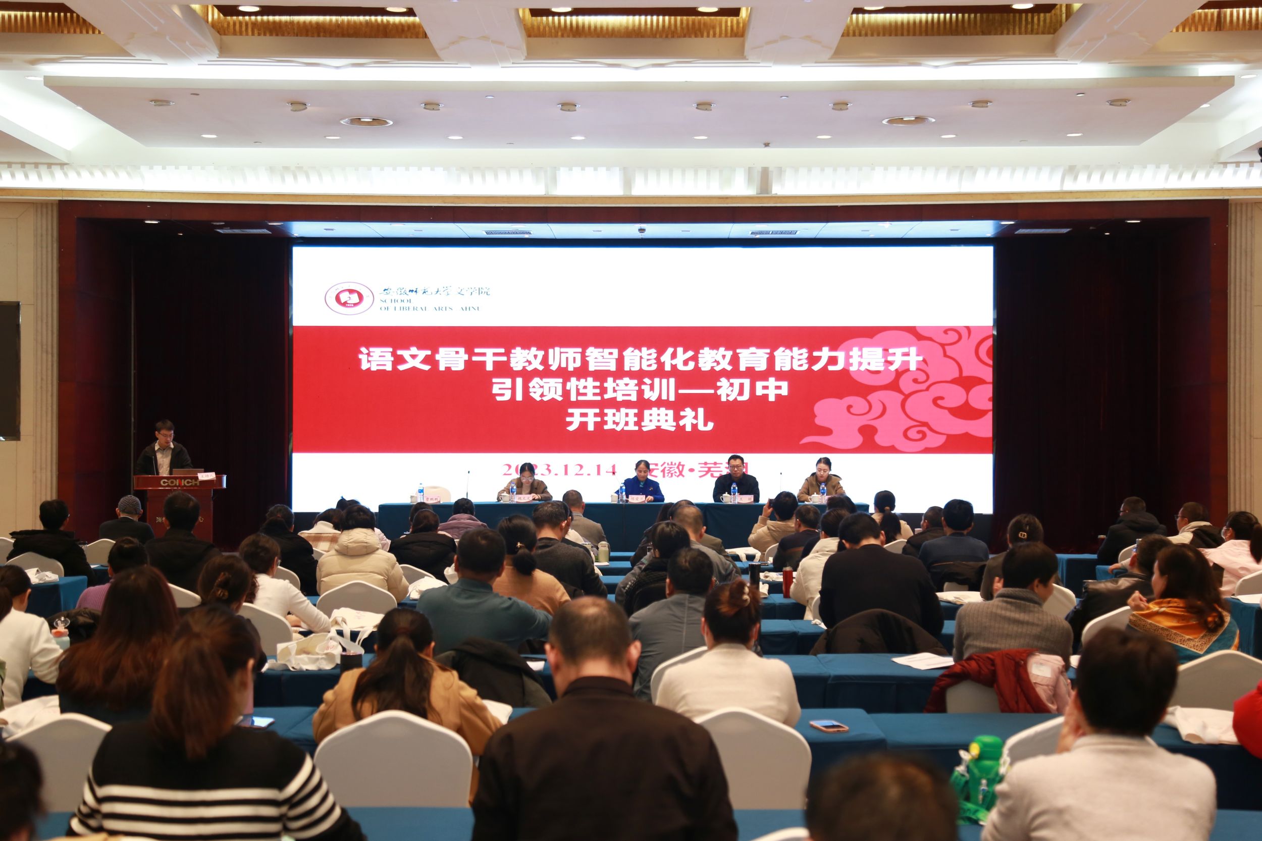 本网讯(必赢线路检测3003no1 曹鹏鹏)12月14日上午,必赢线路检测3003no1承办的2023年安徽省“国培计划”——语文骨干教师智能化教育能力提升引领性培训(初中)项目隆重开班。必赢线路检测3003no1副院长陈爱兰,项目首席专家夏家顺副教授,培训班班主任曹鹏鹏、魏文文、王桢、孙霁雯以及来自全省各地的近200名初中语文骨干教师参加开班典礼。典礼由培训班班主任曹鹏鹏主持。