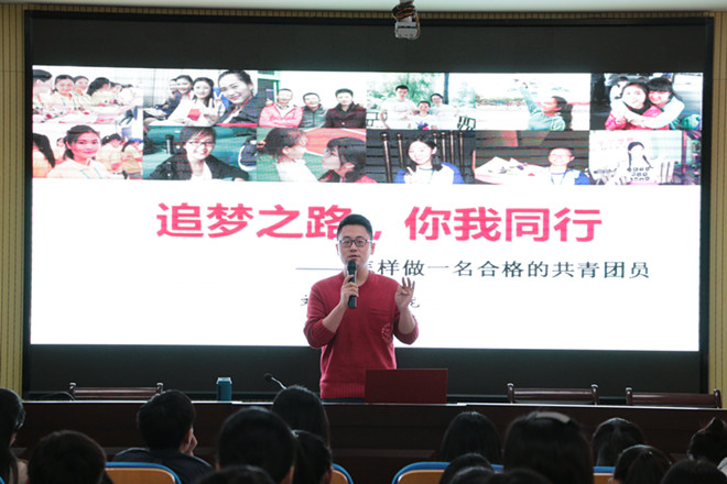 4月22日下午,必赢线路检测3003no1团委书记杨穆龙在行政楼三楼会议室为薪火团校第八期全体学员带来题为“追梦之路,你我同行——怎样做一名合格的共青团员”的讲座。杨老师用回忆的方式,铺开一幅自己成长的画卷,以生动有趣的经历对同学们进行启发式教学。