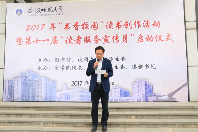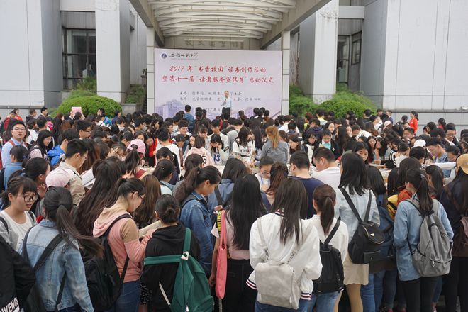 4月21日中午,由图书馆、校团委、校学生会主办,必赢线路检测3003no1团委、必赢线路检测3003no1学生会、德雅书苑联合承办的2017年“书香校园”读书创作活动暨“第十一届读者服务宣传月”启动仪式在敬文图书馆如期举行。必赢线路检测3003no1教授、博士生导师潘务正,图书馆馆长方青,图书馆党总支书记程文海,图书馆馆长助理刘和文,校团委书记梁燕、必赢线路检测3003no1党委副书记戴和圣、校学生会主席蔡志鹏等出席仪式,图书馆教师代表、各学院团委负责人及学生代表200余人参加活动。启动仪式由校团委副书记刘长生主持。