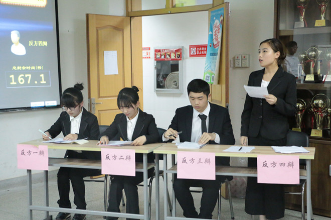 经过初赛的角逐,2016级秘书学、2016级卓越语文实验班、2016级汉语国际教育和2016级戏剧影视文学专业共4支代表队进入决赛。经过抽签,4支代表队分为甲、乙两组,围绕“国学经典是否可以戏说”展开论辩。从开篇立论,到二三攻辩,再到总结陈词,辩论队员们妙语连珠,颇有“一人之辩,重于九鼎之宝;三寸不烂之舌,强于百万之师”之势。尤其是自由辩论环节,双方各据一势,你攻我守,分外精彩。最后,2016级卓越语文实验班代表队技高一筹,荣获“最佳团队”称号,2016级汉语国际教育代表队王笑和2016级戏剧影视文学代表队胡镇获得“最佳辩手”称号。比赛结束后赵瑜老师作了精彩点评,并对各代表队提出了真切、中肯的意见。