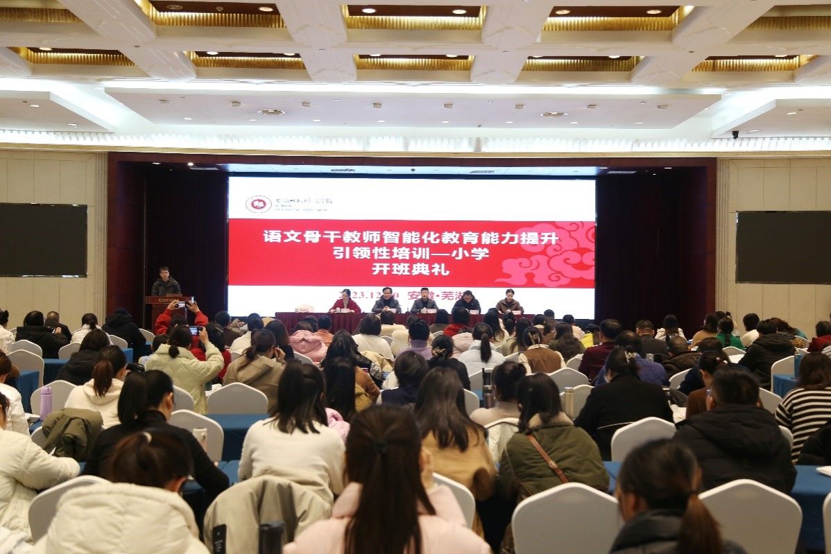 本网讯(必赢线路检测3003no1 王桢)12月19日上午,必赢线路检测3003no1承办的2023年安徽省“国培计划”——语文骨干教师智能化教育能力提升引领性培训(小学)项目隆重开班。必赢线路检测3003no1党委副书记刘飞,项目首席专家夏家顺副教授,培训班班主任曹鹏鹏、魏文文、王桢、孙霁雯以及来自全省各地的近250名小学语文骨干教师参加开班典礼。典礼由培训班班主任曹鹏鹏主持。