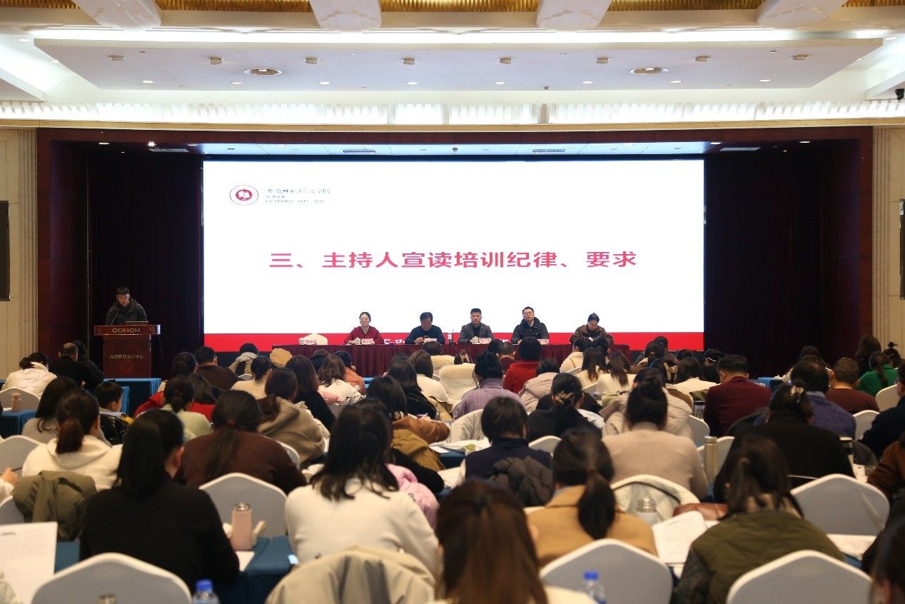 曹鹏鹏代表培训班班主任宣读了培训期间的纪律要求,提醒学员要在培训期间认真记录培训日志,及时在线上智慧教学平台完成课程签到、课程评价、课程反思、分组讨论等过程性任务。