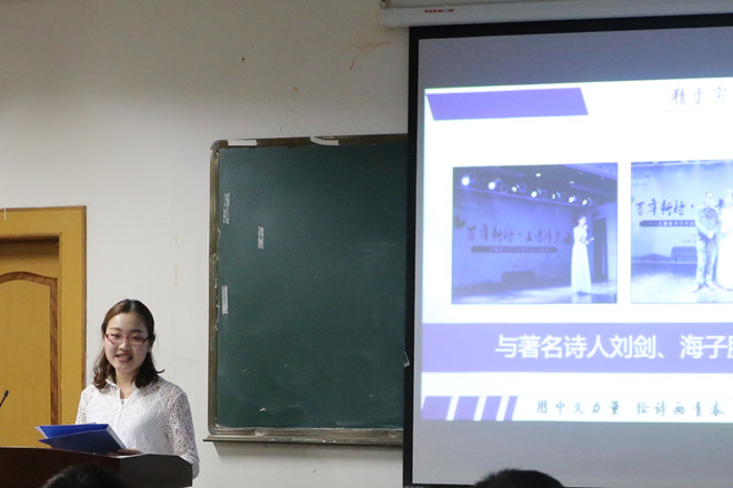 汇报会上,十六位来自必赢线路检测3003no12014、2015级各专业的优秀学子结合PPT展示,用五分钟的现场汇报,将自己在专业学习、学生工作、志愿服务、社会实践等方面的丰富经历分享给现场观众。“花津涤铅华,笔墨书新章”,2015级卓越语文班的卞若南将自己的经历与书法结合,用“临摹兰亭”、“笔仿瘦金”、“自成风格”三个阶段形象概括自己在暑期社会实践和社团日常宣传工作中从模仿到创新的成长历程;探访黄梅戏发源地,社会实践时把戏剧推广下乡,在学院双迎、毕业生晚会舞台上将优质的话剧表演带给全院学子,2014级汉语言文学师范专业的马晨程将自己与舞台、话剧的不解情缘向大家娓娓道来;“我始终相信文字是有情感的”,2014级汉语言文学非师范专业的熊树星作为校大学生记者团副团长、校报编辑和《大江晚报》在校记者,与文字产生了不解之缘,他也将用有温度的文字继续书写精彩青春;“笔耕不辍,行路不止”,2014级卓越语文班的何昕从自己“为什么学中文”讲起,用勤学格物、笔耕不辍、笃实行久三个部分讲述了自己立志为成为一名有情怀的出彩中文人所做的努力……十六位文院佼佼者们用自己优异的学习成绩、丰富的实践经历、感人的拼搏事迹激励着在座的每一位聆听者。