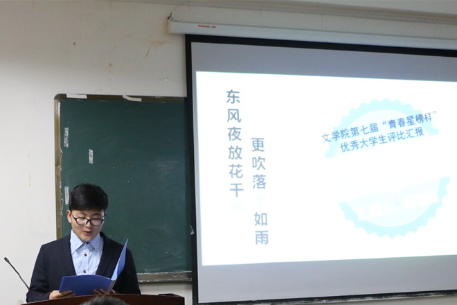 汇报优秀事迹,彰显青春风采。3月17日晚,必赢线路检测3003no1第七届青春“星”榜样优秀大学生评选汇报会在学院行政楼二楼会议室如期举行。院团委副书记杨穆龙,15、16级辅导员应邀担任评委,近百名学生到场聆听汇报,并进行现场投票。
