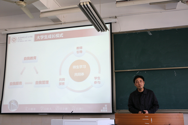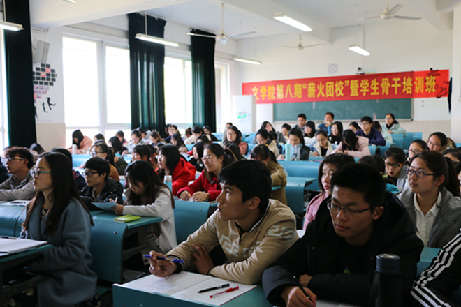 “我们是五月的花海,用青春拥抱时代……”在朝气蓬勃的歌声中,开班典礼拉开序幕。班主任赵瑜首先向大家介绍了本期培训班的教学活动、实践活动安排和学员纪律守则。来自2016级汉语言文学非师范专业的吴睿康同学作为学员代表发言。他表示,作为一名新时代的共青团员,既要纯洁思想、坚定信念,认识到自己的责任与义务;也要努力学习、磨炼技能,让自己成为一个成熟且具有创造力的学生干部。“夫所以读书学问,本欲开心明目,利于行耳。”吴睿康同学选取《颜氏家训》中的一句话作为结束语,号召学员们练技能于身,践理论于行。