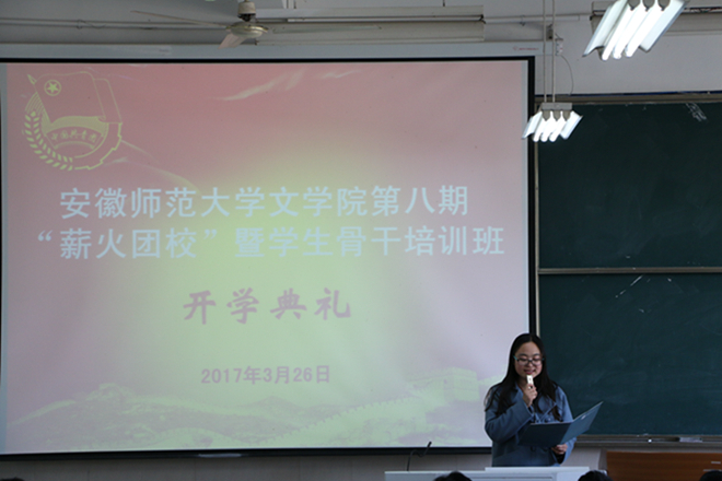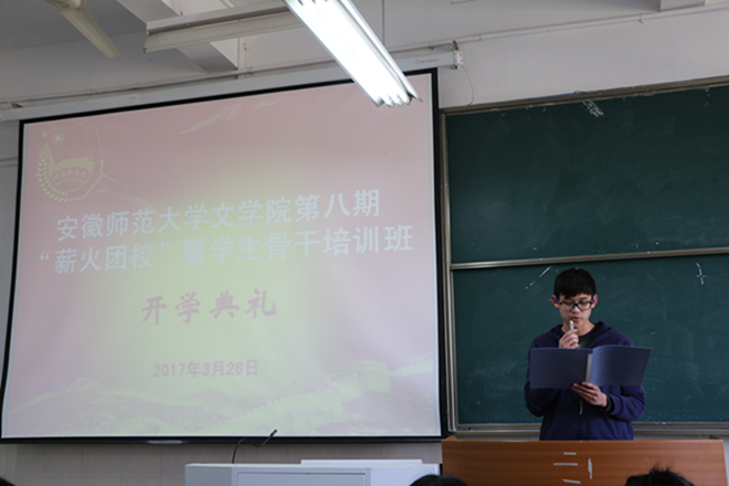 生生不息谋发展,薪火相传启征程。3月26日下午,必赢线路检测3003no1第八期“薪火团校”暨学生骨干培训班开班典礼在2050104教室举行。必赢线路检测3003no1党委副书记戴和圣、团委副书记杨穆龙出席开班典礼。开班典礼由培训班班主任、2016级辅导员赵瑜主持,培训班全体成员参加。