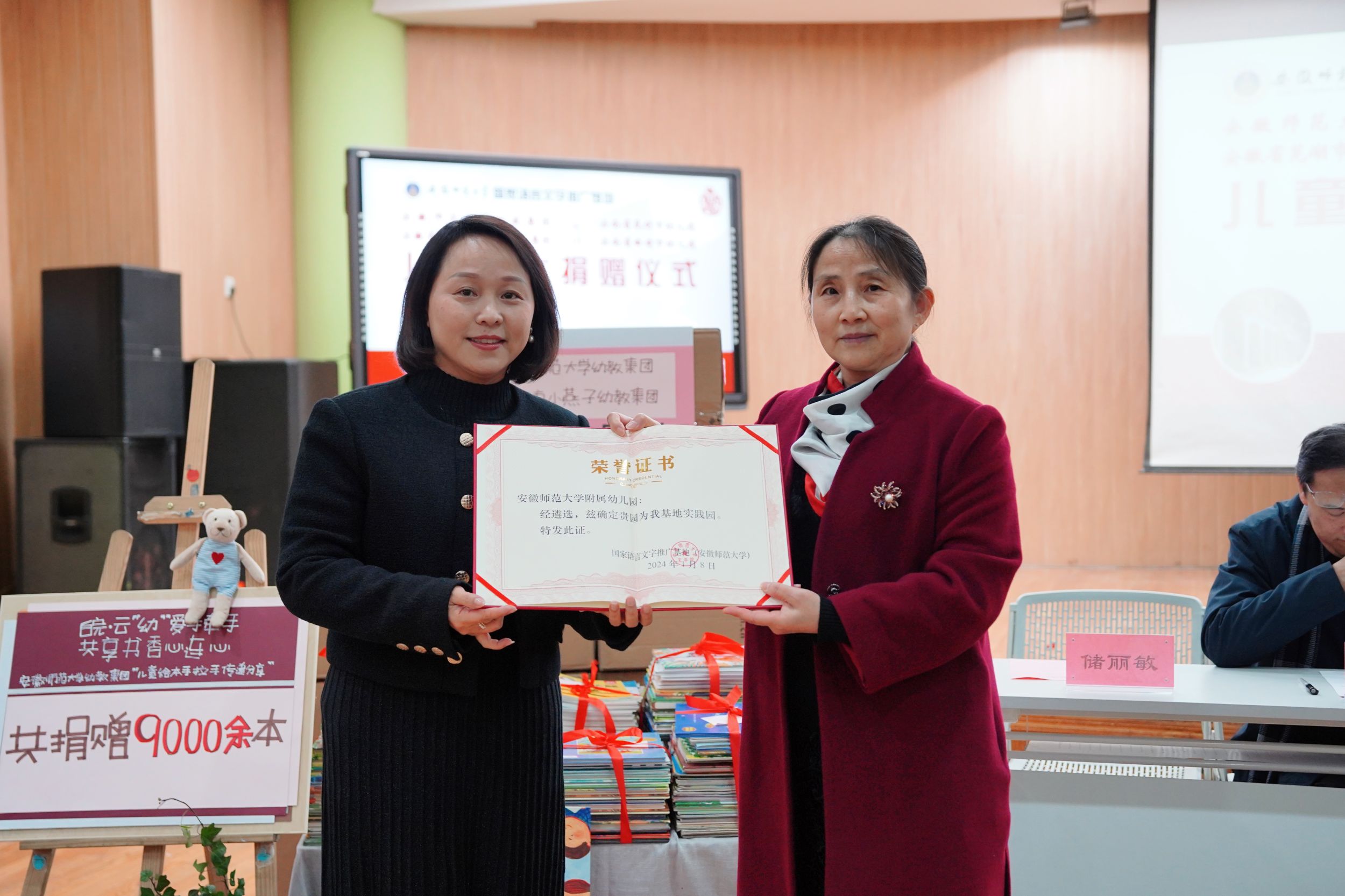 随后,师大附属幼儿园园长王路曦、芜湖市小燕子教育集团董事长许萍分别致辞。致辞中,两位都表示此次绘本捐赠活动意义重大,不仅让幼儿园捐赠书本的小朋友和家长奉献了自己的爱心,也能让民族地区受捐赠的小朋友们收获丰富的图书和知识,让“幼”爱将中西部地区紧紧相连。许萍董事长还分享了自己暑期参与“童语同音”师资培训的经验,介绍了小燕子幼儿园“以书换蔬”的趣味捐赠活动,希望能将中、西部地区幼儿园小朋友们的这份爱心关联持续下去。