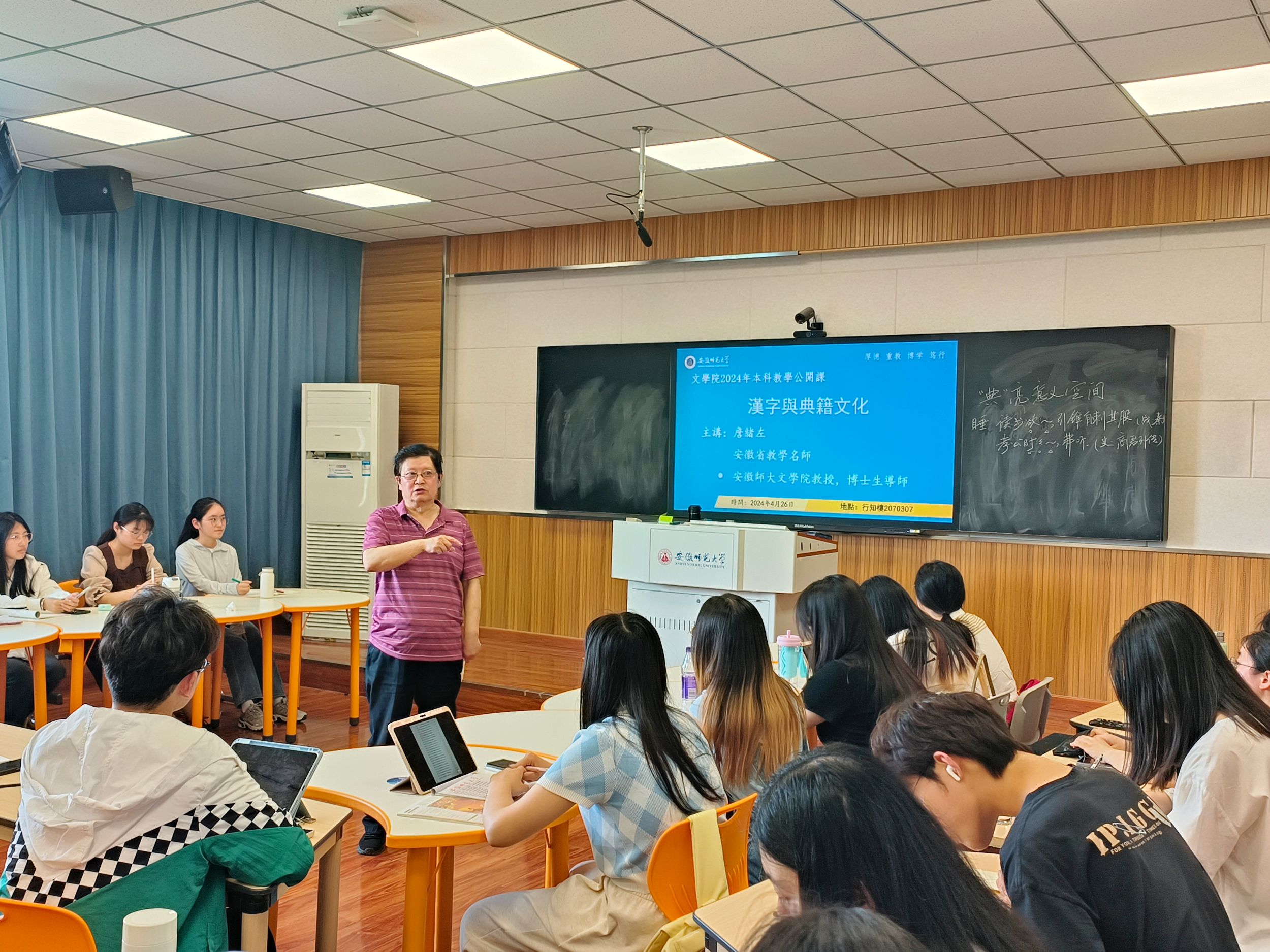 4月26日下午,2024年必赢线路检测3003no1本科教学公开课在花津校区教学楼2070307教室举行。本次公开课由汉语教研室詹绪左教授为全校本科生主讲通识课《汉字与中国文化》,必赢线路检测3003no1领导以及部分青年教师到场观摩了此次本科教学公开课。