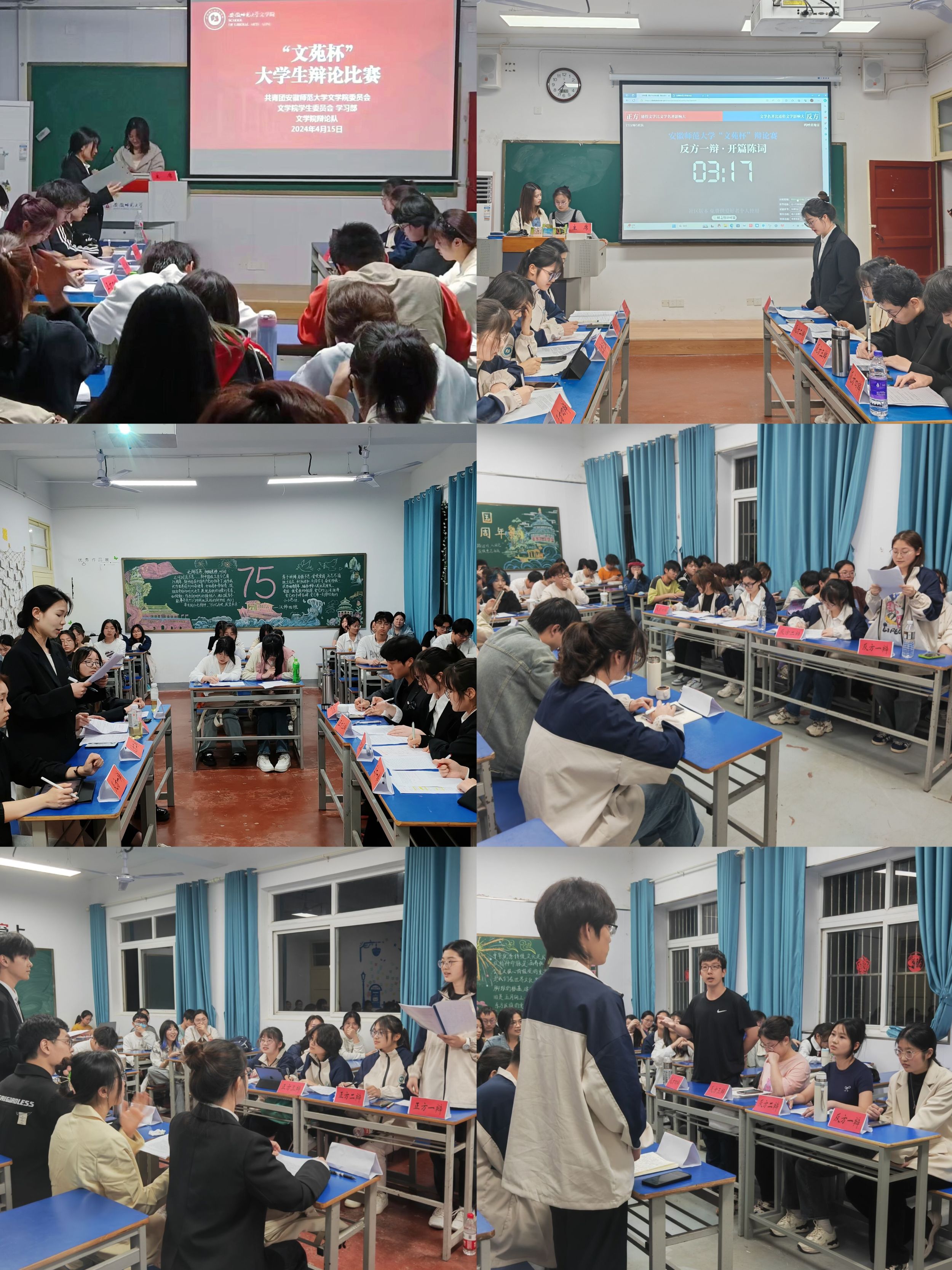 此次“文苑杯”辩论赛自4月初启动以来,学院2022级和2023级各班级共组建了12支代表队,赛程分为初赛和决赛。初赛在天门山校区举办,经过激烈角逐,最终有6支队伍进入决赛。