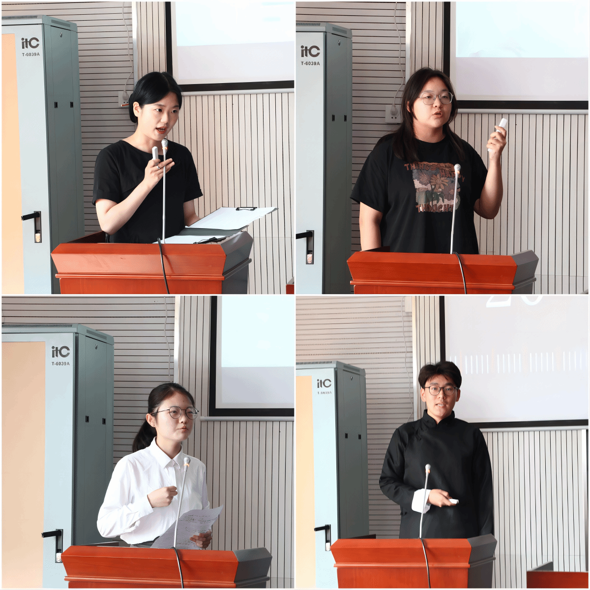 经过各学院初审推荐,20位参赛同学依次上台,通过 PPT 展示和演讲相结合的形式,分享自身读书心得。他们的汇报涵盖文学、历史、新闻学等多个领域,既有对经典作品的探讨,也有对经典作品在新时代下的新解读。金婷同学通过《触摸历史与进入五四》一书,分享自己的阅读方法和读书笔记,带领现场观众触摸历史脉搏,重回激情燃烧的五四岁月,并在历史与现实交织中,鼓励同学们以优秀青年学子为榜样,勇于追求真理与理想;苗飒飒同学就《牛虻》一书分享了她的阅读心得,并对这本书的主旨思想进行了深入探讨和分析,“信仰是心灵的太阳,没有信仰,心灵便是一片黑暗。”青年人需要有追求,需要有信仰,她希望青年人能够通过对书籍的阅读找寻自己心灵宁静之处;孙诗语同学通过一步步对《平凡的世界》的解读,带领着同学们看到艰苦时代下普通人在面对困境时的选择和奋斗,展现人民坚韧不拔的精神风貌,最后她鼓励大家应当怀揣着使命感和责任感去奋斗,为实现中华民族伟大复兴作出自己的贡献。