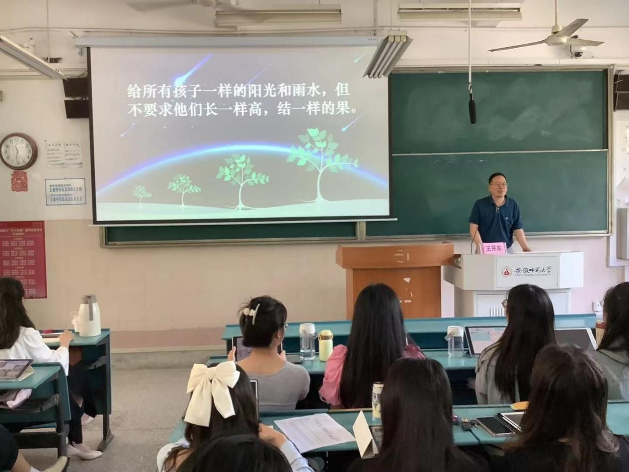 讲座结束后,代安保同学代表发言并作活动总结。他感谢王开东老师的倾心指导,深感专业系统的理论指导和丰富有趣的案例分析让同学们充分认识到教育测评的重要性和必要性,增强了测评和调研的意识,掌握了教育测评的方法和路径。同学们纷纷表示,作为“预备役”教师,通过学习深刻懂得了“从冰冷冷的分到活生生的人”,在追求高质量发展的路上,立志扛起育人的初心使命。