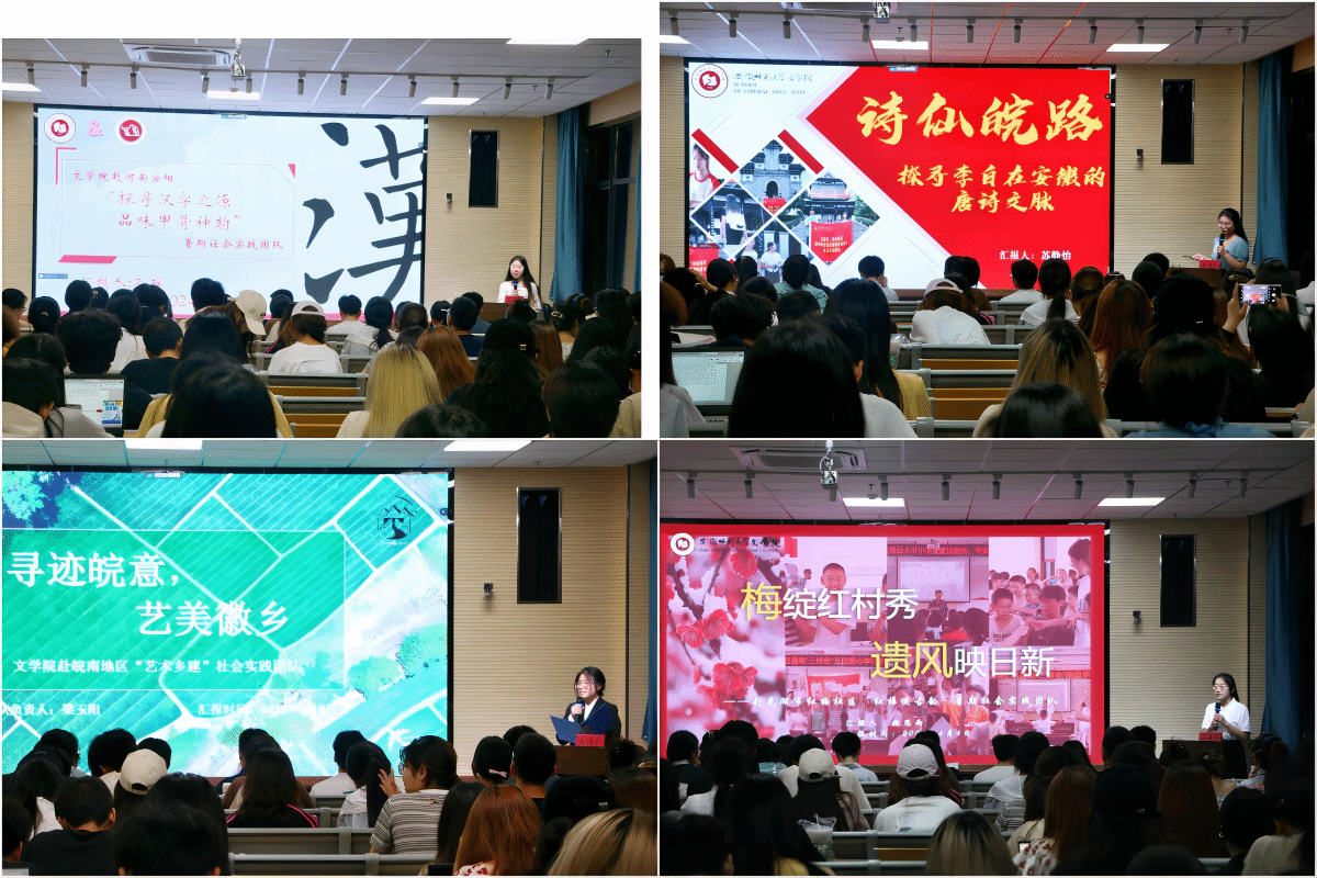 徽声悠扬传古韵,皖韵绵长续乡音。“徽声皖韵,传承乡音”安徽方言地理语言学调查社会实践团队将继续深入安徽省13个地区,开展以“调查方言本体,绘制方言地图,传承安徽文化”为主题的方言调研,通过采访与采录的方式,推动方言的保护与传承。仁爱传递润无声,携手同心助残童。五四爱心学校赴蚌埠“心手相牵,暖心助碍”助残支教暑期社会实践团队在蚌埠市禹会区、蚌山区残疾人康复中心开展助残支教,设计丰富课程,关爱残疾儿童,呼吁社会关爱残疾人群体。墨香飘逸黄山麓,文理交融育新篇。五四爱心学校赴黄山“说文写字”实践团队围绕“说文写字,文理并行”主题,通过爱心支教传递中华传统文化魅力,探索教育高质量发展新路径,同时结合市调竞赛实地调研,深入了解当地教育与社会发展现状。2023级汉语言文学(师范)专业将组织“地方优师”学生成立社会实践专项团队赴宿松县开展支教活动,提高师范生专业技能,助力基础教育振兴。