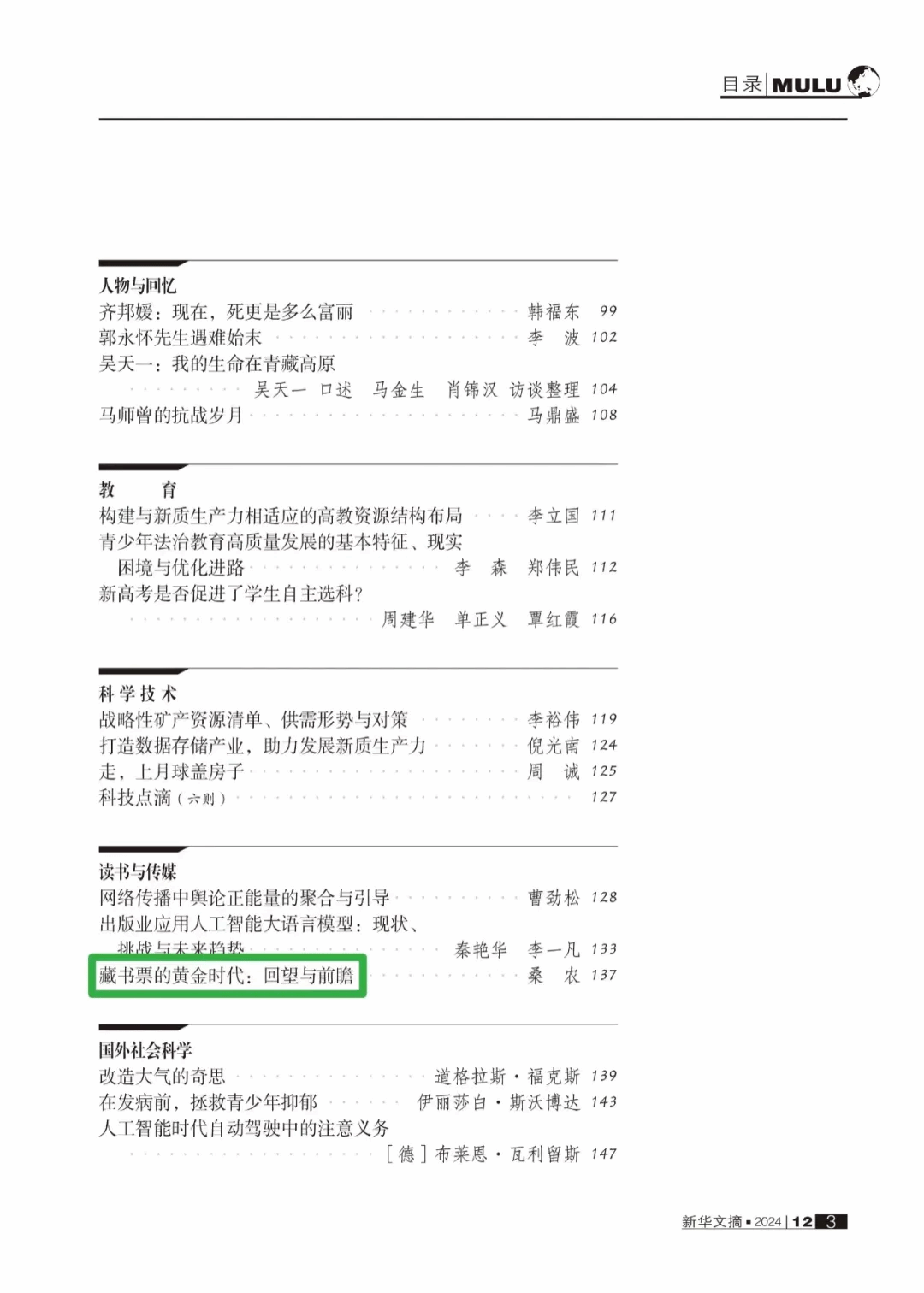 《新华文摘》2024年第12期(总第792期)全文转载我院桑农老师论文《藏书票的黄金时代:回望与前瞻》。