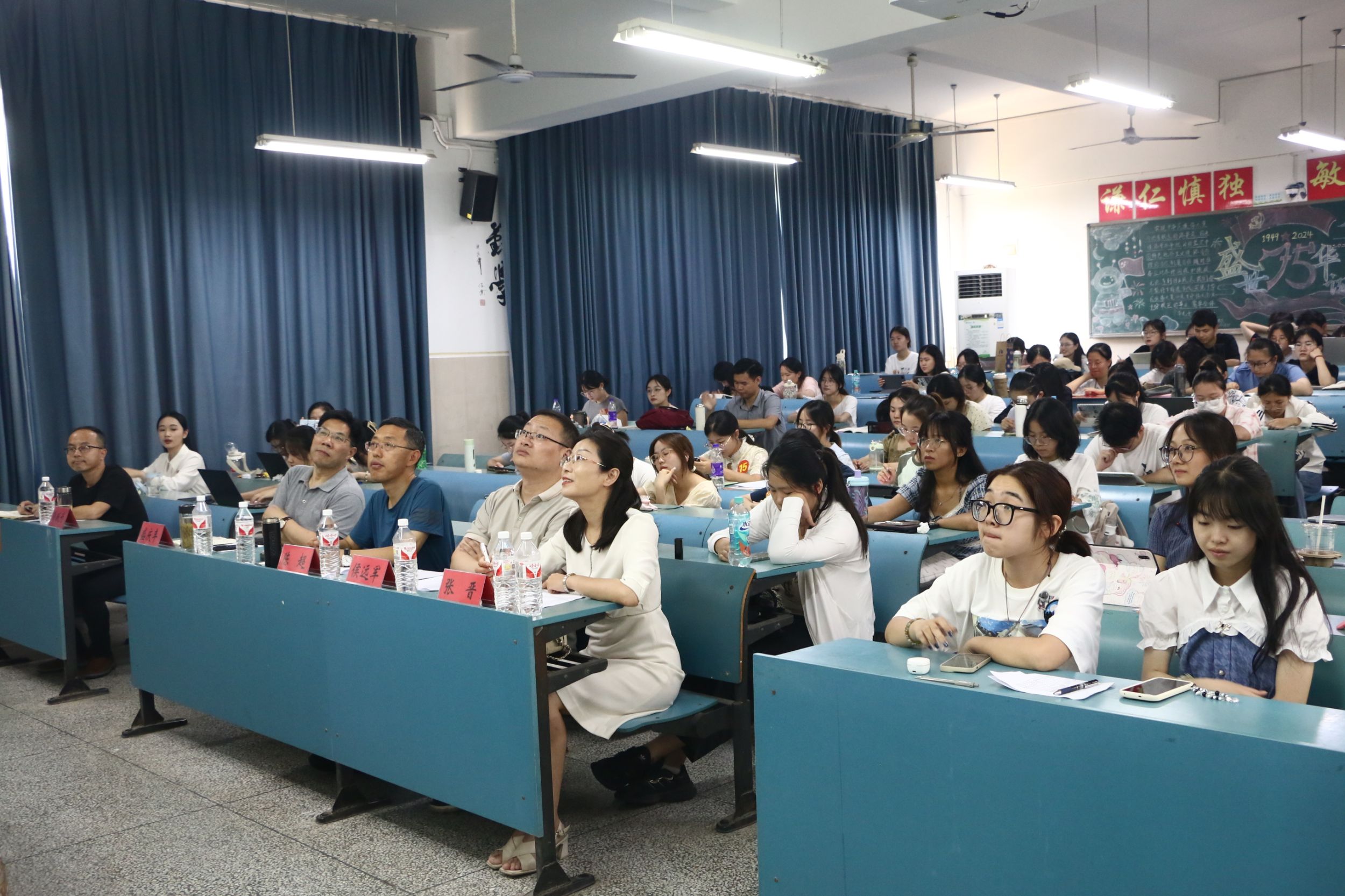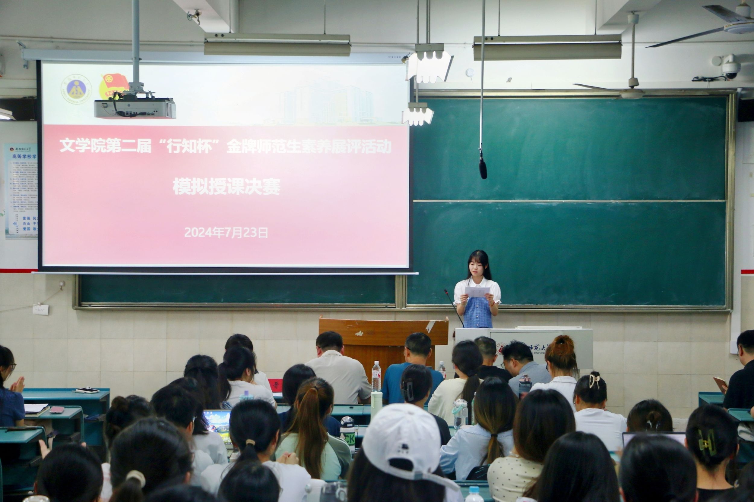 7月23日,必赢线路检测3003no1举办第二届“行知杯”金牌师范生素养展评活动,本次活动分为模拟授课比赛和主题演讲比赛两个环节。淮北一中正高级教师陈超、安师大附属中学高级教师侯远军、宣城中学正高级教师彭跃为、马鞍山二中正高级教师盛庆丰、必赢线路检测3003no1汉语言文学(师范)专业主任胡承佼和学科语文硕士点负责人张晋出席并担任模拟授课环节的评委。我校普通话教研室主任、汉语国际教育专业负责人汪红艳和写作学专任教师芮瑞应邀担任主题演讲环节的评委。