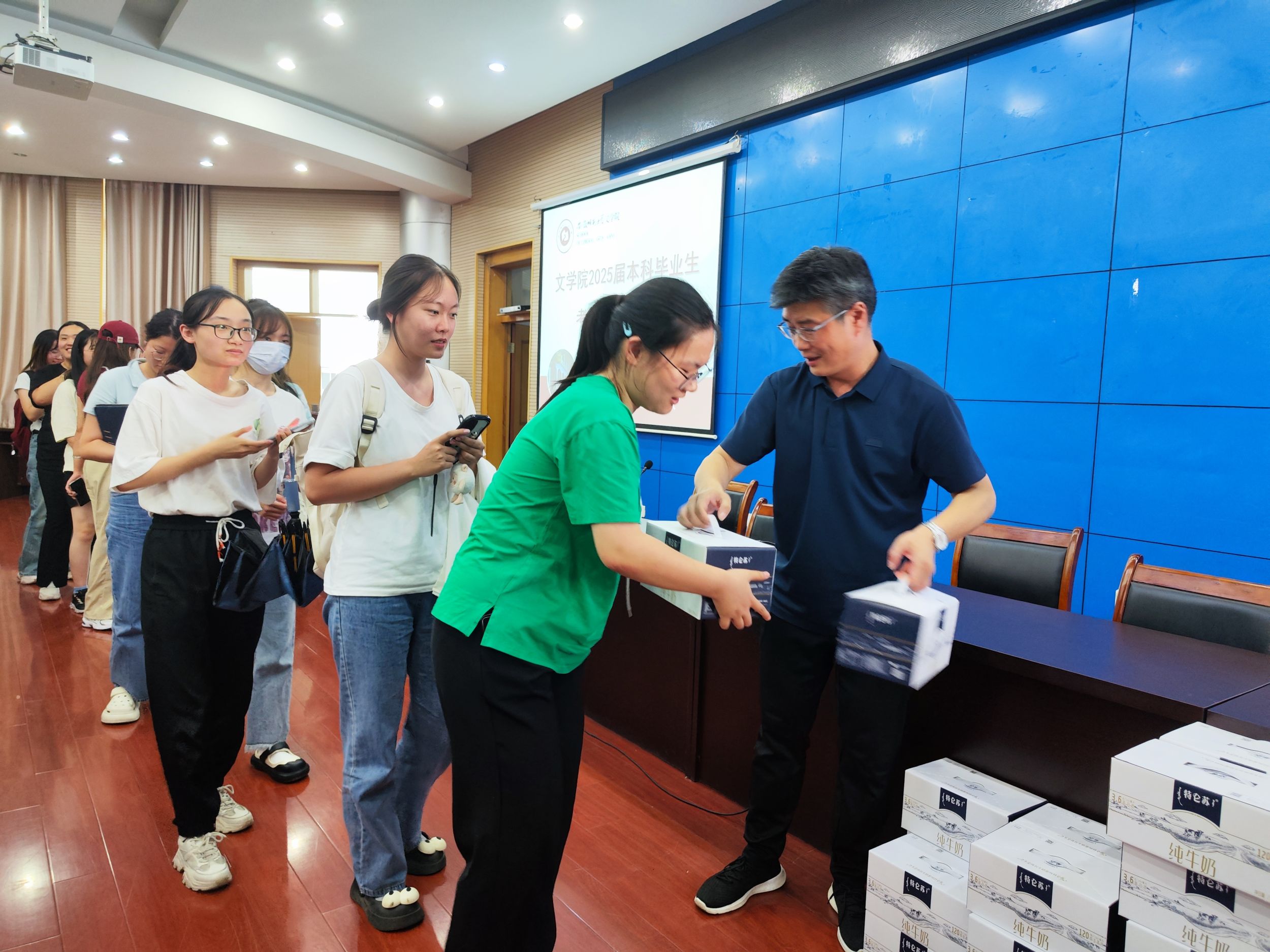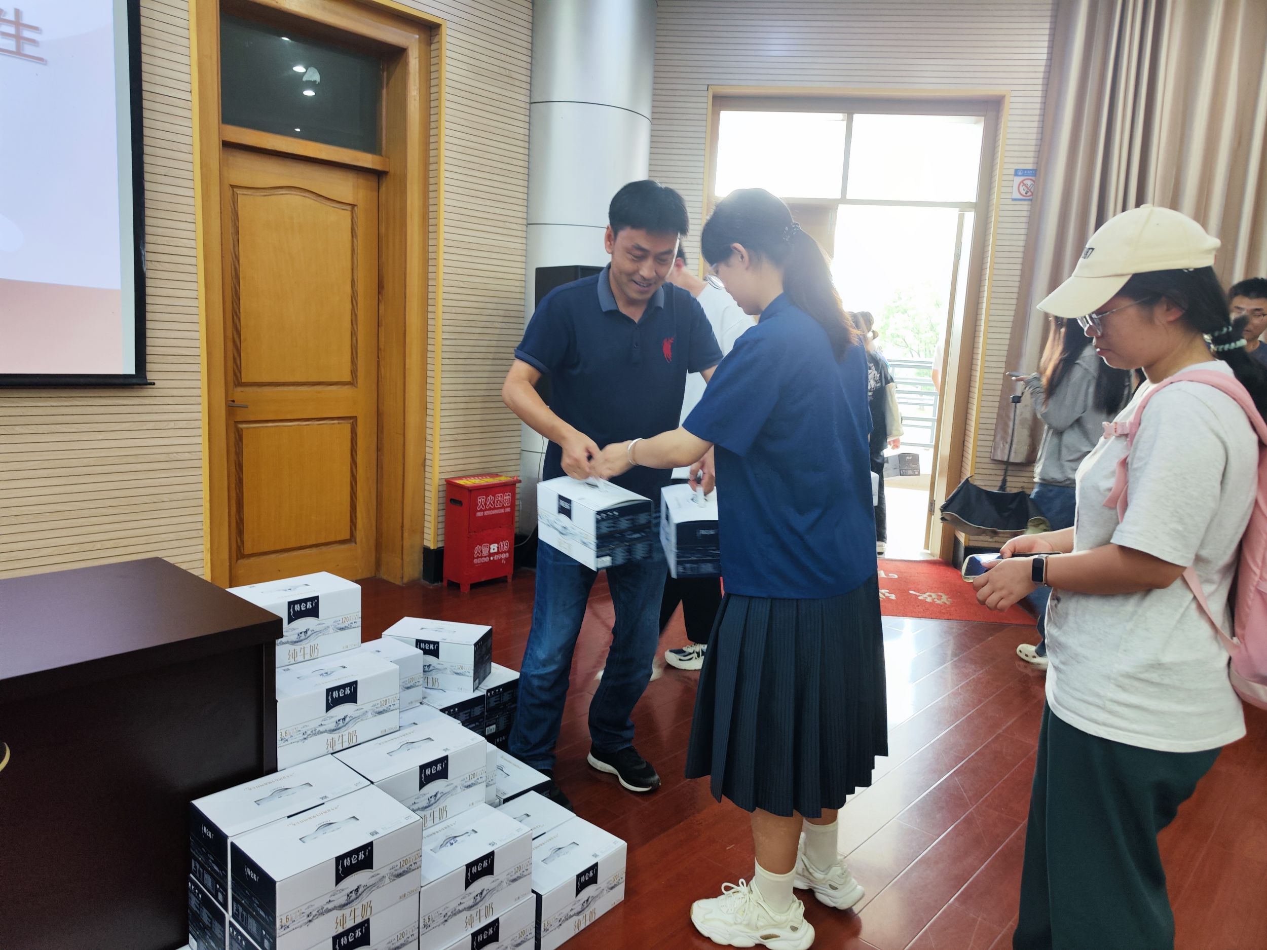 会后,学院领导老师为同学们发放了牛奶等慰问品,表达了全院教师对同学们的期盼与祝福。