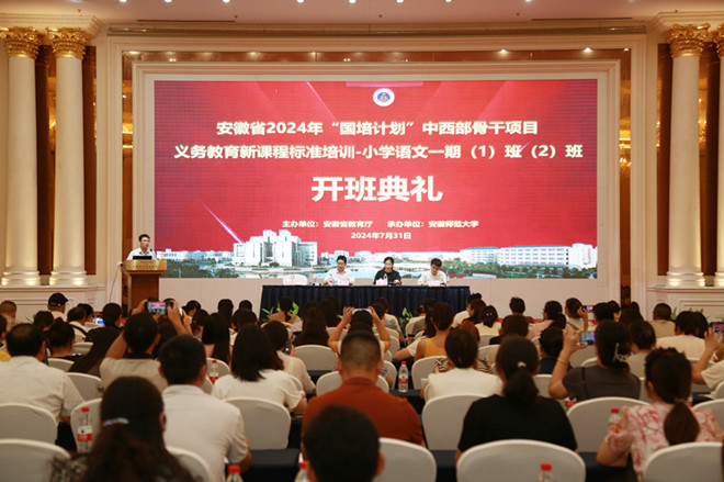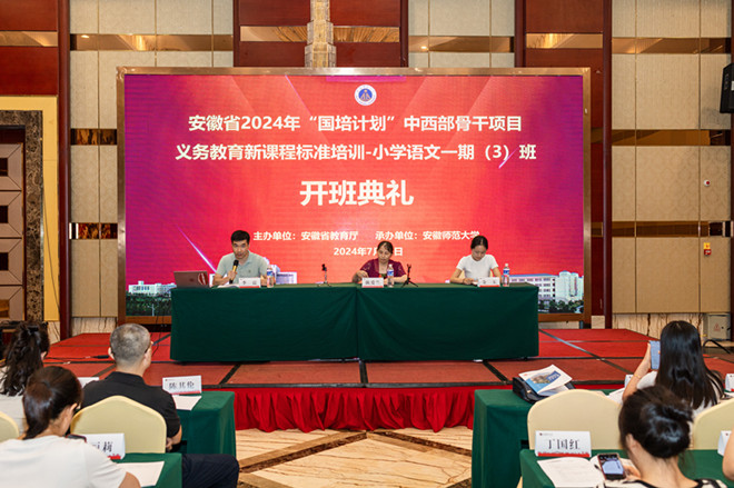 7月31日下午,必赢线路检测3003no1承办的安徽省2024年“国培计划”中西部骨干项目——义务教育新课程标准小学语文一期培训班隆重开班。必赢线路检测3003no1副院长陈爱兰、李伟,项目首席专家张晋,培训班班主任曹鹏鹏、孙霁雯、阮熹晟、李震,以及来自安庆、蚌埠、滁州、合肥、六安等五个地市的近600名小学语文骨干教师参加了开班典礼。典礼在三个会场同步举行,由各班班主任主持。