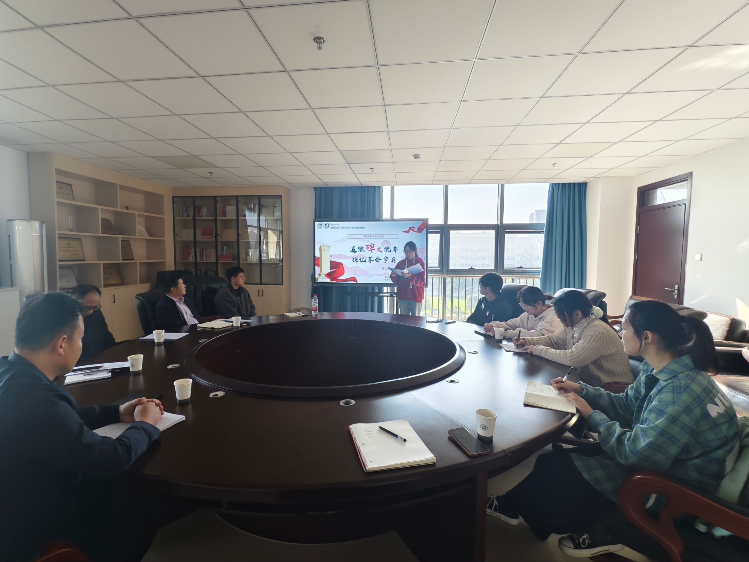 关注实践成果,保障调研前行。会议伊始,由刘飞介绍必赢线路检测3003no1对学生实践调研活动的支持以及“追踪碑文流年,探忆革命岁月”团队的基本情况和实践成果。潘晓军进行了相关补充并提出未来实践打算。团队骨干成员孙启明、华妍分别汇报了团队成员在红色文化实践中的经验感悟与调研成果。