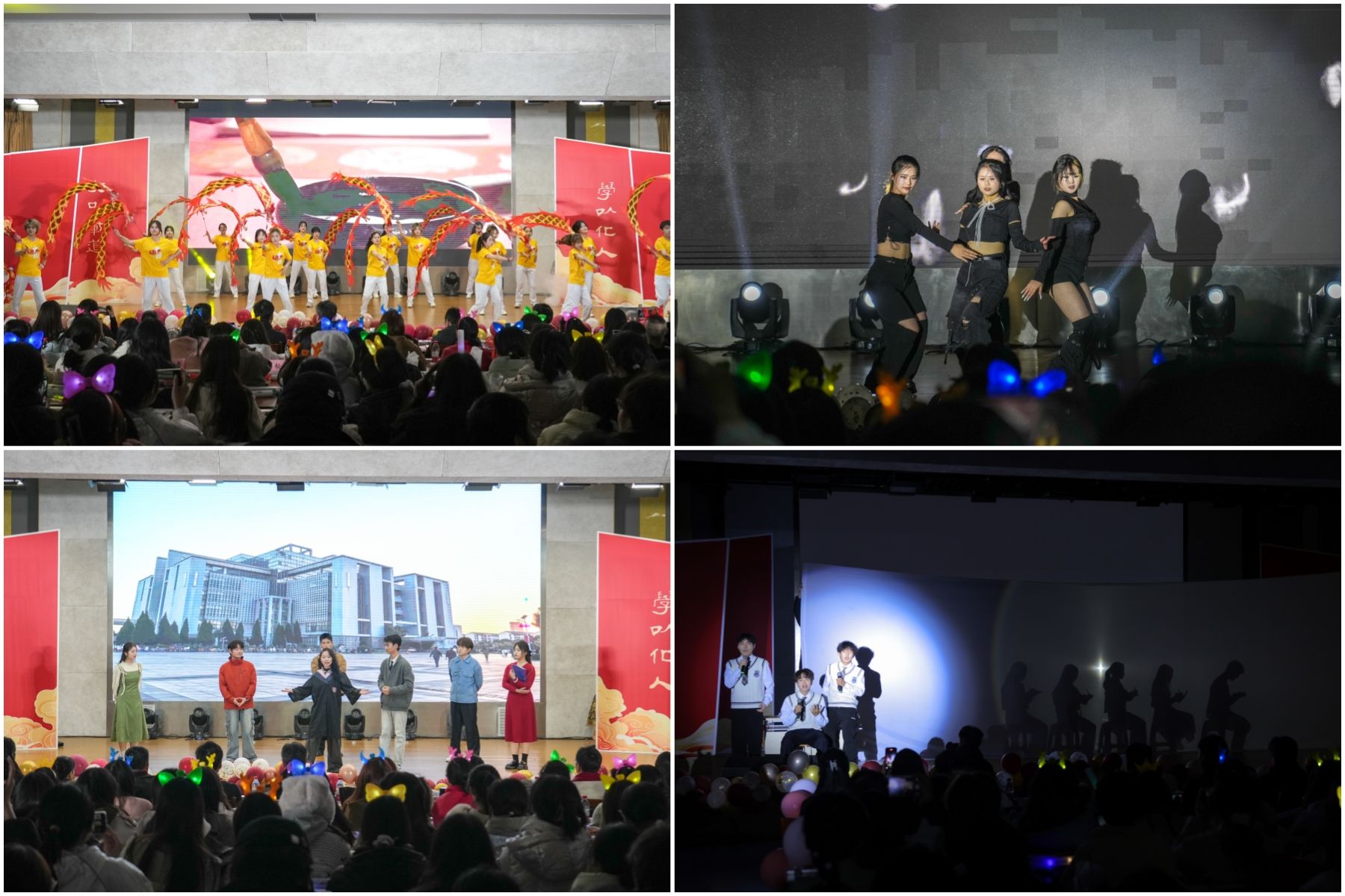 原创情景朗诵《党员登记表》向观众们展现出像丹岩一样赤诚热烈的党员情、爱国情。经典名著剧目《八十一难》以幽默情节,再现唐僧师徒四人面对八十一难时的机智与关怀。古典舞《如梦令》以优美舞姿表现李清照的诗意天地,将文学与舞蹈的魅力充分结合。歌曲串烧《师大电台》带领同学们回顾青春故事,让同学们于歌声中寻找温暖的心灵港湾。最后,师生节目《像你这样的朋友》惊喜上演,学工团队精心准备的“红包”、师生携手互动,点燃现场氛围。