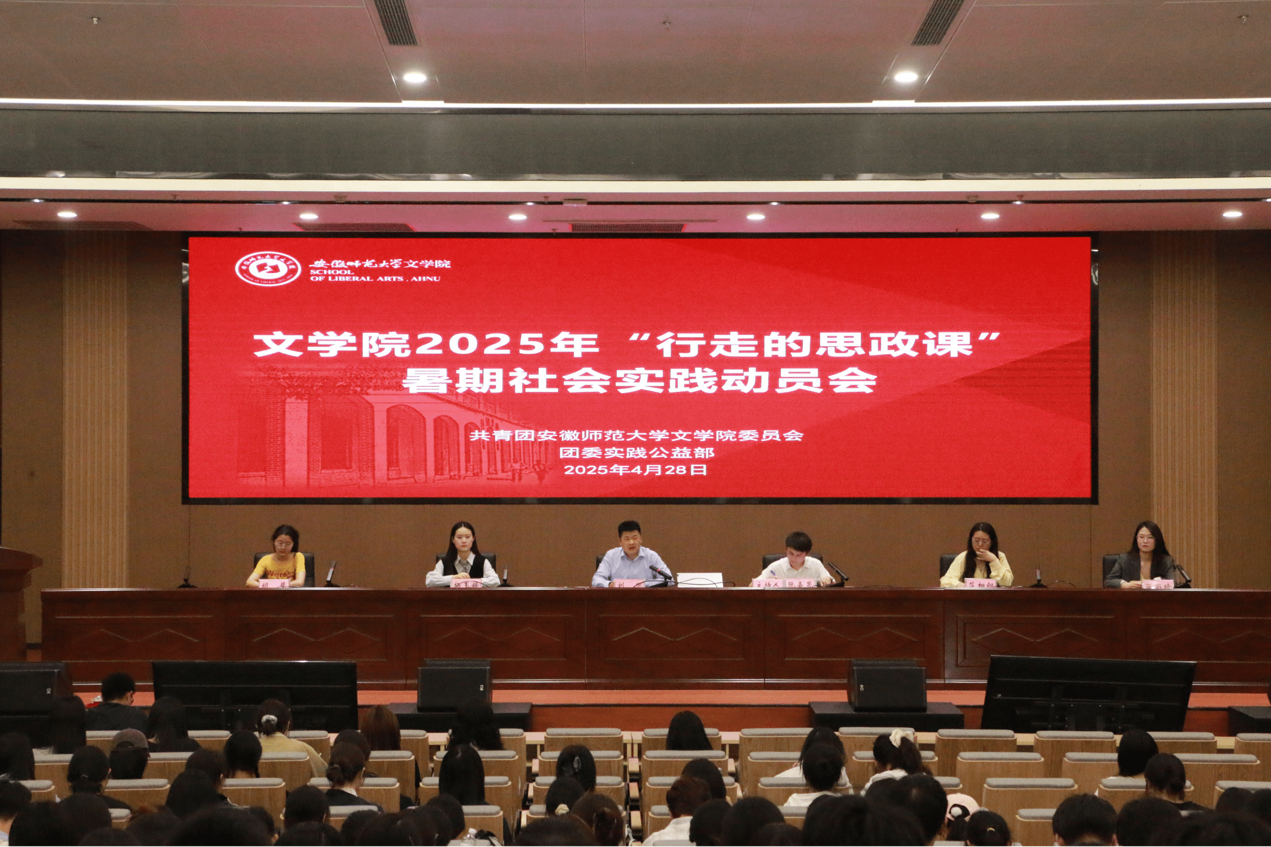 4月28日晚,必赢线路检测3003no1于文典楼西裙楼三楼报告厅召开2025年“行走的思政课”暑期社会实践动员会。必赢线路检测3003no1党委副书记刘飞,团委书记阮熹晟,2023级、2024级辅导员,以及必赢线路检测3003no1往年暑期社会实践优秀团队代表,2023级、2024级本科生和研究生代表参加动员会。