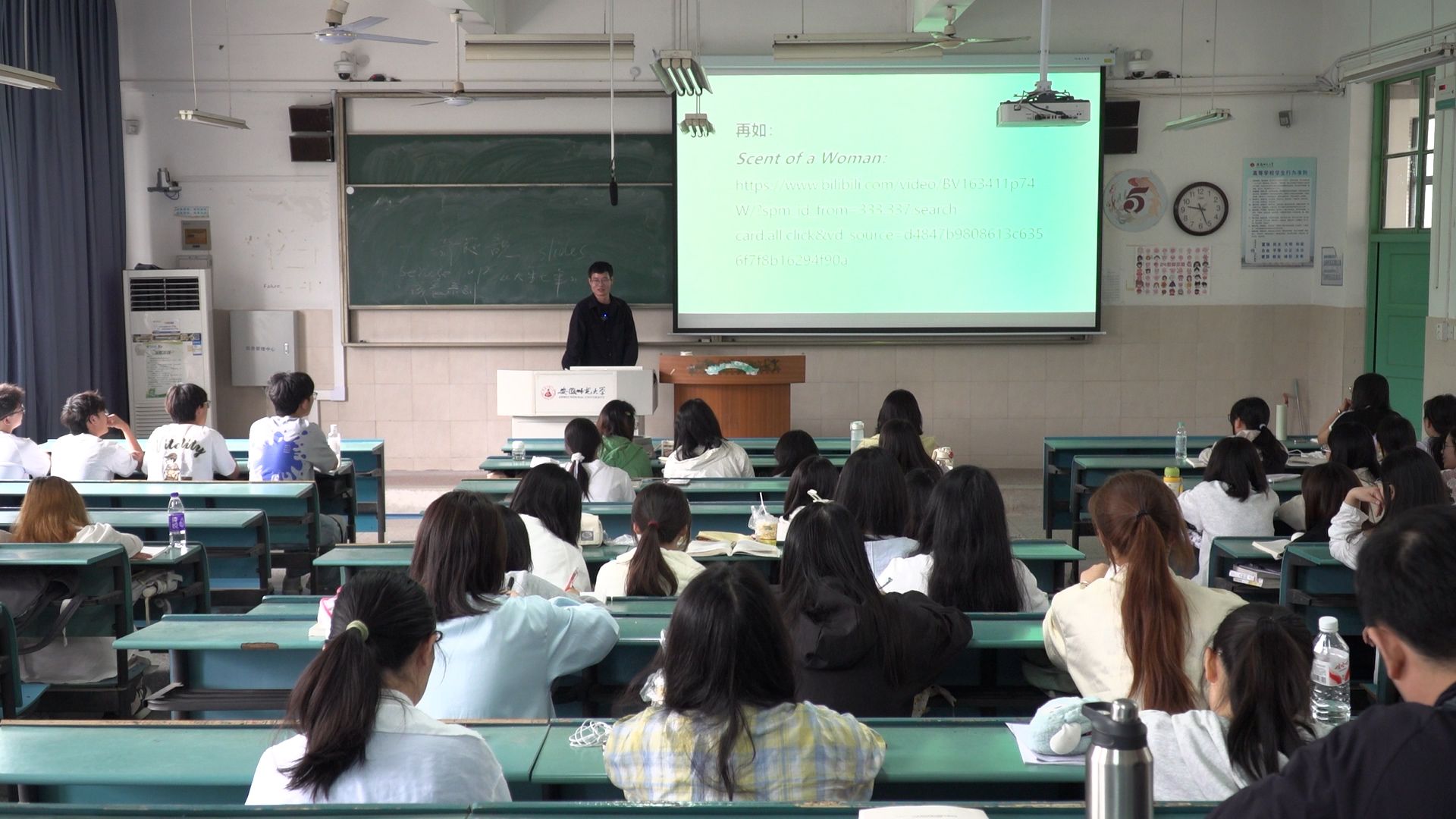 石老师首先以问题导入的方式,通过提问和互动让学生深入了解何为演讲稿。紧接着,石老师和同学们讨论发言稿、讲话稿和演讲稿的异同,对相关知识点进行了梳理。此外,通过播放演讲视频《30天改变自己》《寒门贵子》等,在增加教学趣味性的同时,使学生们加深了对演讲稿的理解。石老师深入浅出的讲解,让现场师生沉浸其中,体现了较强的课堂驾驭能力和教学功底。