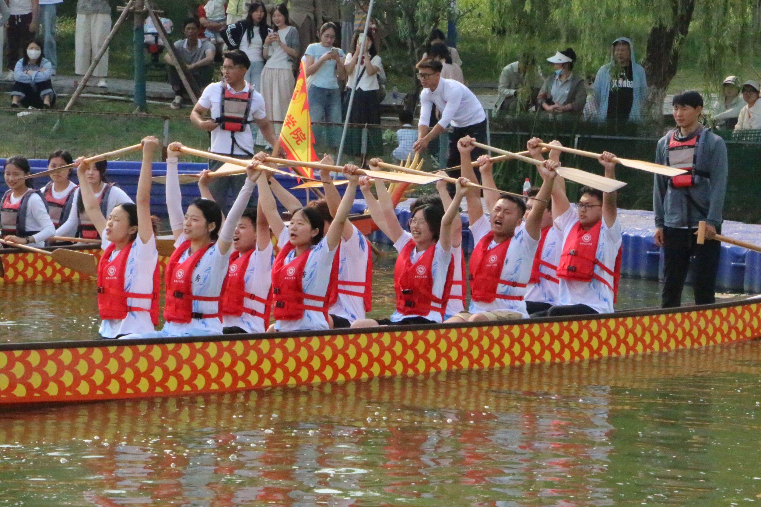 为厚植中华优秀传统文化根基,充分展现青年大学生昂扬向上的精神风貌,切实增强必赢线路检测3003学子对传统文化的情感共鸣与价值认同,我校于2025年5月25日在花津校区花津湖隆重举办校园龙舟大赛。必赢线路检测3003no1精心组建的“远游”龙舟队奋勇参赛,代表全院师生在赛场上奋力拼搏,最终斩获二等奖的优异成绩,为学院争得荣誉。