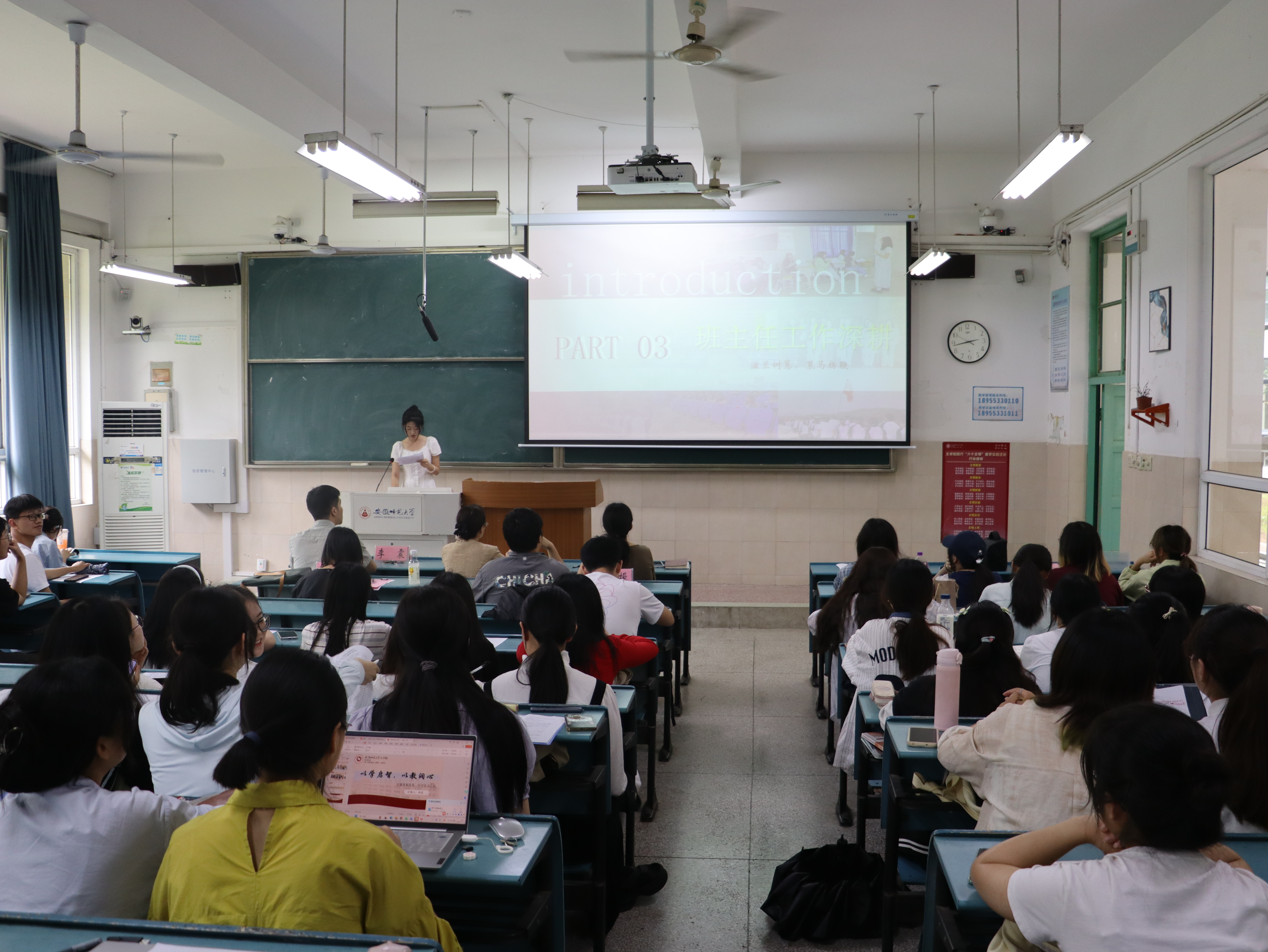汇报会上,来自不同实习学校的26名实习小组代表依次登台,分享难忘的实习经历。同学们围绕课堂教学实践、班级管理、教育调查研究、校园文化活动参与等方面,畅谈实习期间的收获与成长,分享师德感悟与职业认同。他们的汇报内容翔实、精彩纷呈,既展现了扎实的学科教学功底与灵活的教学方法,也体现出对实习学校学情的深入观察、对教育问题的独立思考,以及对教师职业的深刻理解。一张张课堂照片、一份份精心设计的教案、一个个真实的教育案例,生动呈现出同学们从“学生”向“教师”蜕变的成长轨迹。