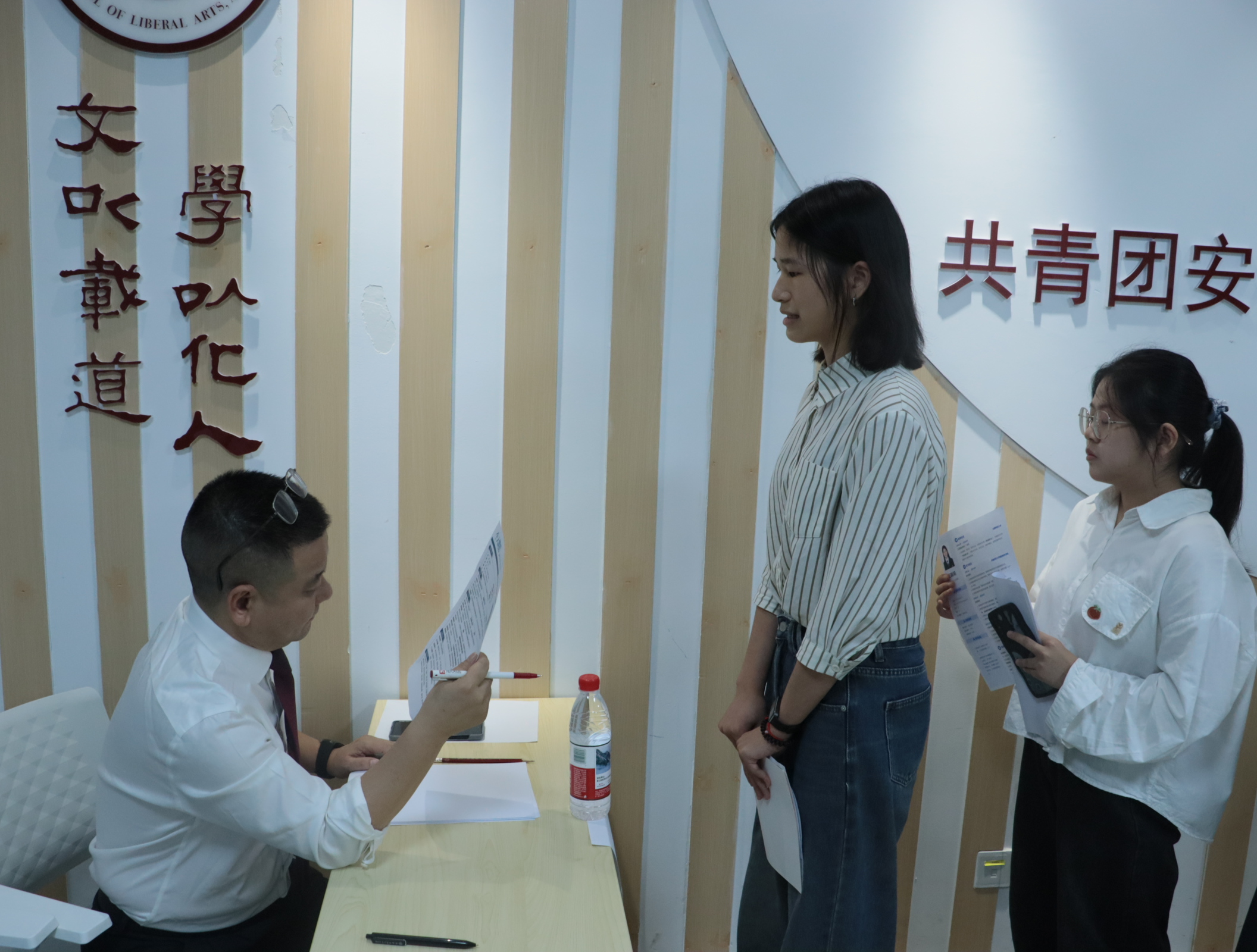 宣讲会结束后,大沥镇教育局以及各中小学校分别进行了笔试和面试,并与有意向的毕业生开展了进一步商谈。