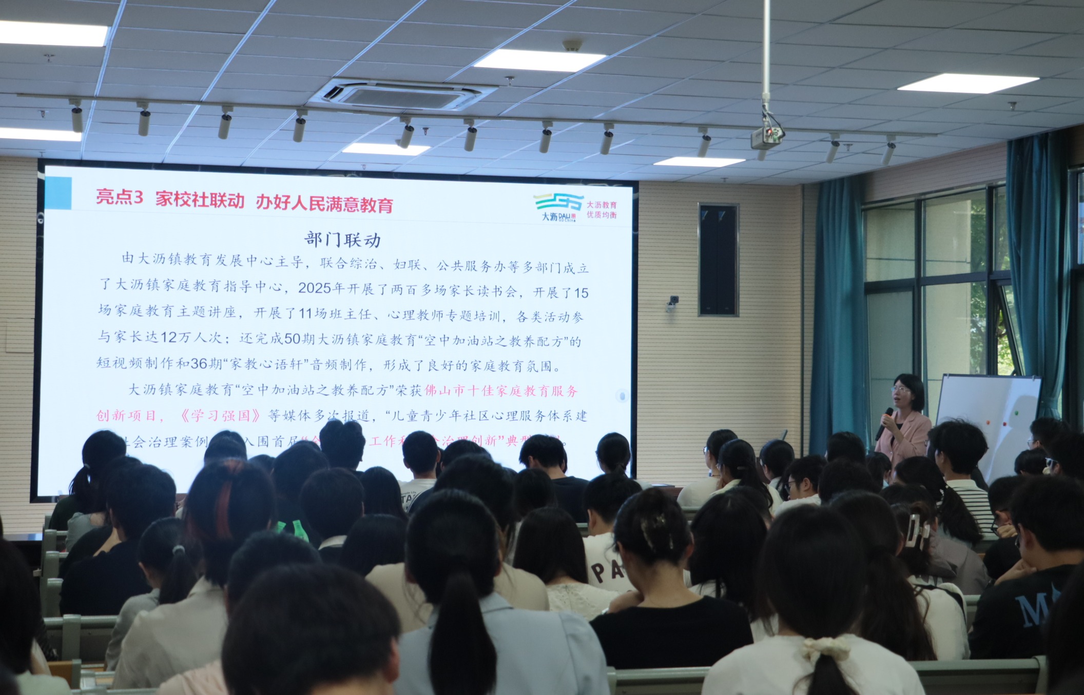 9月23日下午,必赢线路检测3003no1启动2026届毕业生首场校园招聘活动。广东省佛山市南海区大沥镇党委、教育局以及10位中小学校长应邀来院开展2026届毕业生校园招聘宣讲活动。活动现场气氛热烈,秩序井然,共有120余名应届毕业生积极参与。会上,大沥镇教育发展中心梁静怡详细阐述了大沥镇作为广东省教育强镇的综合实力与教育事业成效,并围绕招聘学科设置、岗位需求、薪酬待遇以及地区发展前景等方面作了全面介绍。本次招聘计划23人,涉及语文、数学、物理、化学等师范专业。