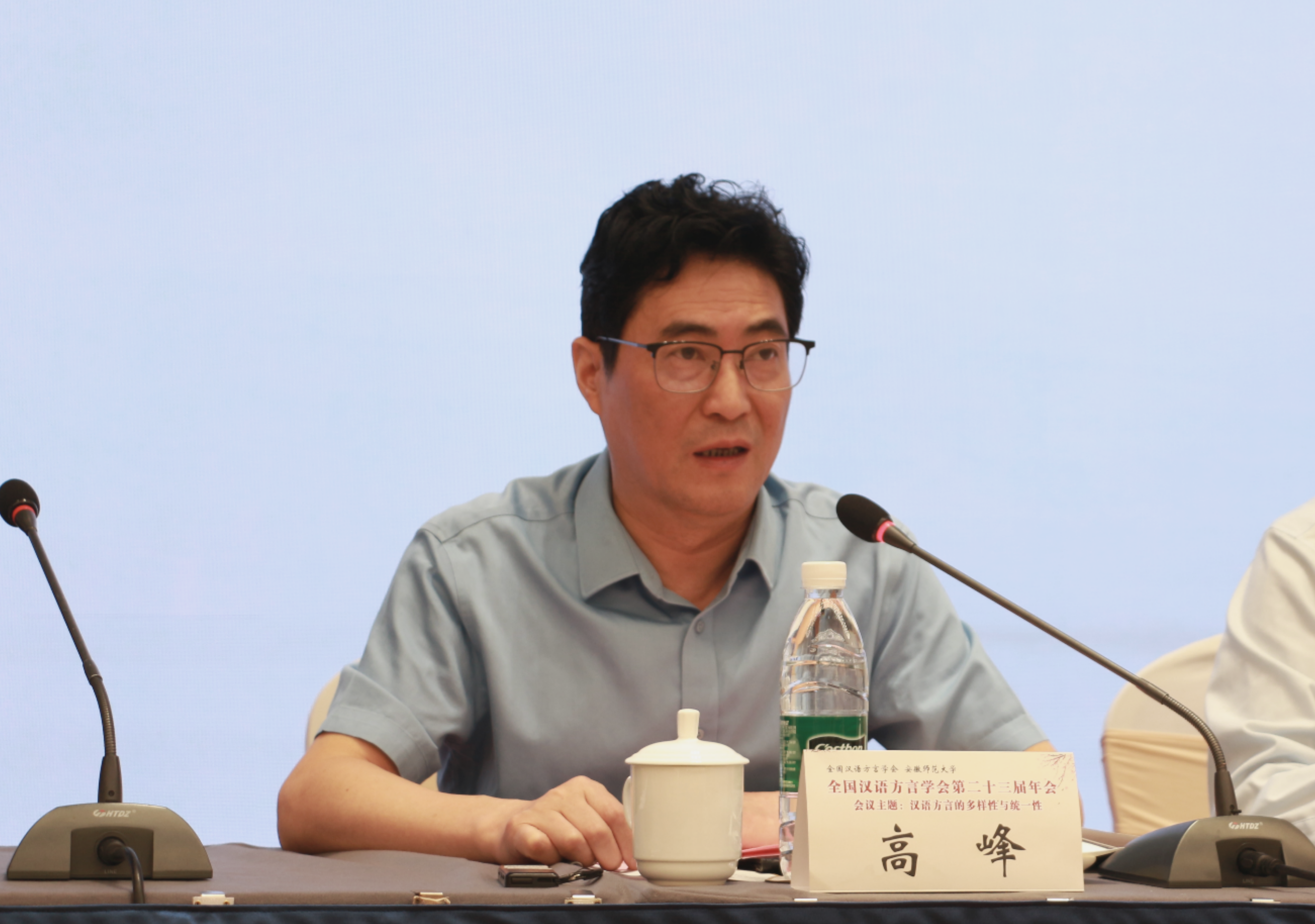 王锋研究员代表学会代管单位致辞,向会议的顺利召开表示祝贺。他指出,全国汉语方言学会作为“全国先进社会组织”,始终以团结广大会员、推动方言研究与保护为己任。在习近平文化思想指引下,方言研究被赋予新的时代使命,要进一步加强有组织科研,深化方言理论创新,推动汉语方言与国家通用语言、少数民族语言的融合研究,深入挖掘方言的文化价值,引导公众共同参与方言保护。