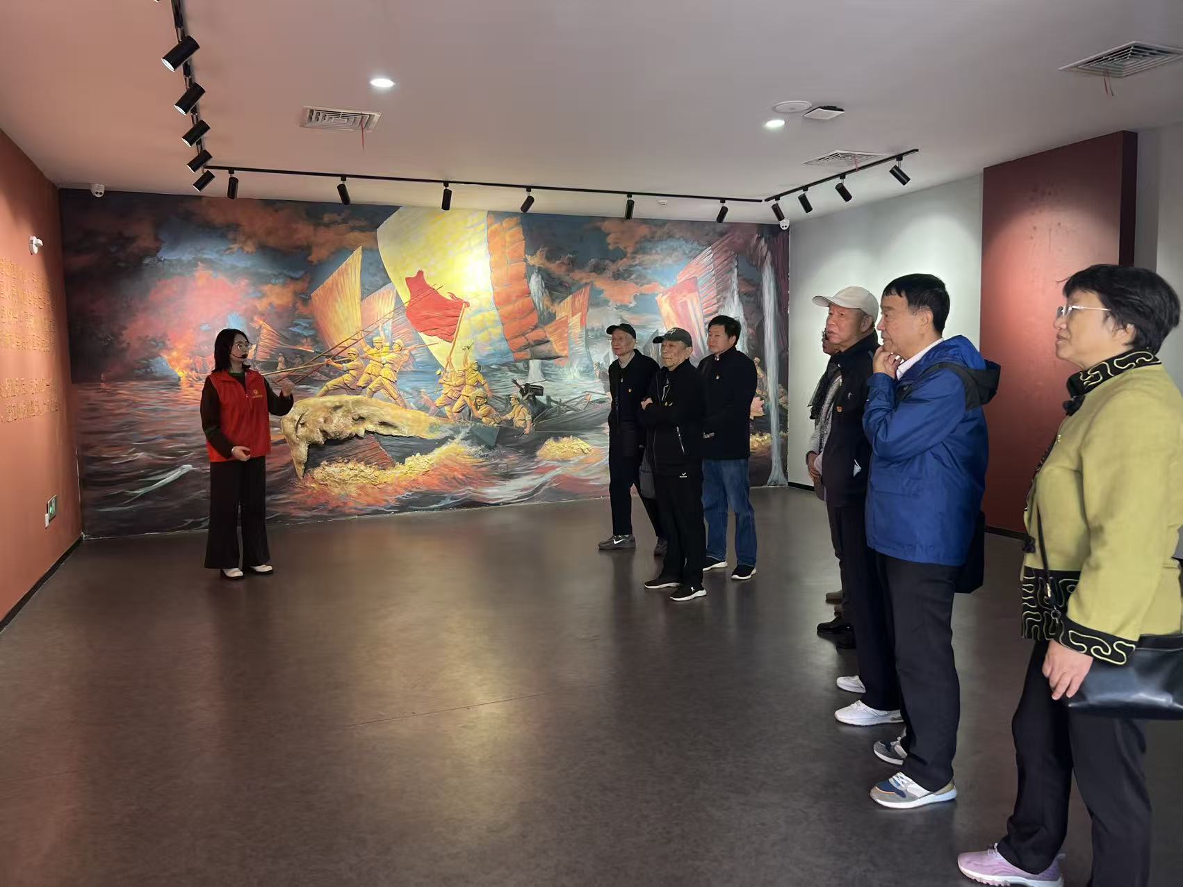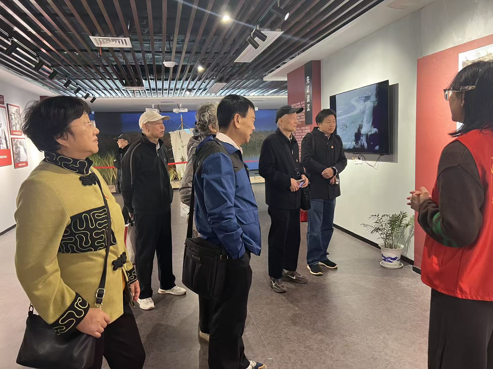 渡江战役是解放战争期间一场具有重大战略意义的战役。人民解放军百万雄师在西起湖口、东至靖江的千里战线上强渡长江,以排山倒海之势突破国民党军队的防线。这场战役的胜利,为全中国的解放事业奠定了坚实基础,充分展现了人民军队英勇顽强、不怕牺牲的革命精神。纪念馆内设有“战役序曲”“战役前奏”“长风破浪”“胜利凯歌”和“浩气长存”五个主题展厅。在讲解员的引导下,老党员们依次参观各个展区,通过观看丰富的历史图片、珍贵文物以及多媒体场景复原,聆听那段烽火岁月的英雄故事,深刻感受到渡江战役的艰苦卓绝与革命先辈的坚定信念。