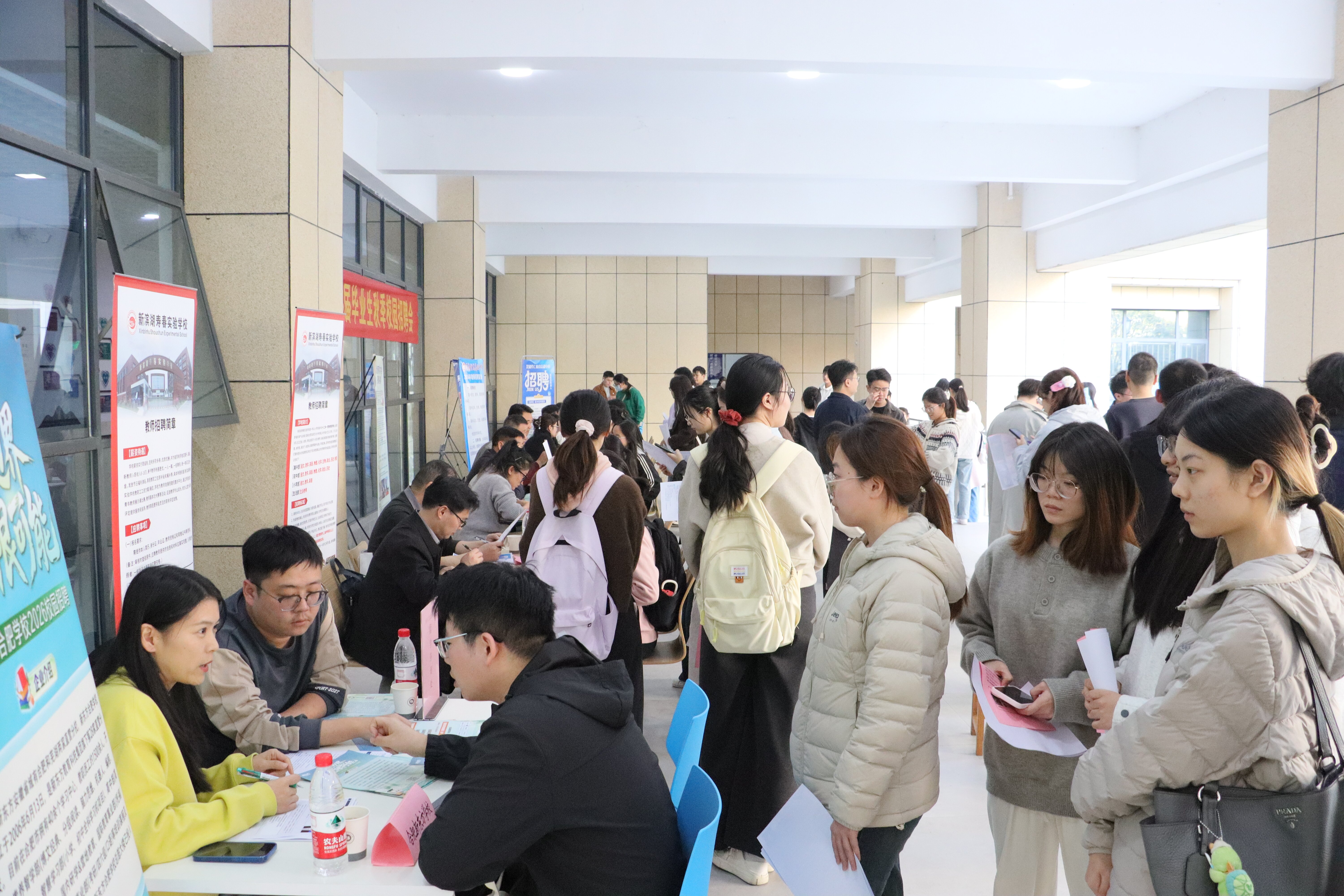 11月14日下午,必赢线路检测3003no1在文典楼西侧一楼举办2026届毕业生秋季校园双选会。本次招聘会吸引了来自合肥、芜湖、淮南等多地优质教育单位,提供岗位数200余个,涵盖语文、数学、英语、物理等多学科。