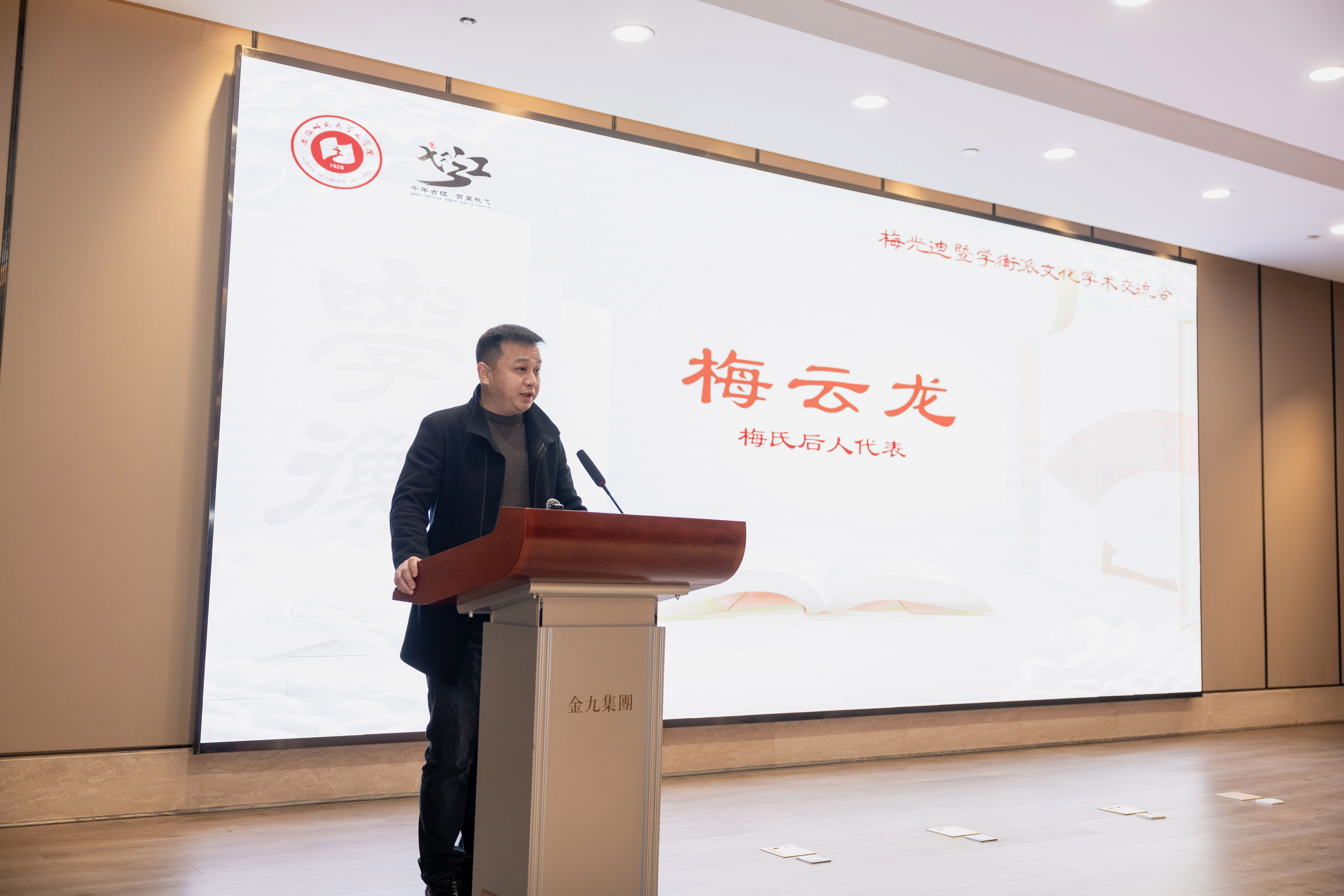 南陵县委副书记杨磊在致辞中对与会嘉宾表示欢迎,强调本次会议是深入学习贯彻习近平文化思想、推动文化“两创”的实践,并阐述了南陵深厚的历史文脉与梅光迪先生的思想价值,期待以此次会议为契机,深化合作,打造地方文化名片,助力南陵文化繁荣。必赢线路检测3003党委副书记曾黎明代表学校感谢南陵县委以及芜湖市相关部门对本次活动的大力支持,对与会学者表示热烈欢迎,并介绍了学校办学的情况及中文学科在学术研究、人才培养等方面的突出成就。他指出,梅光迪作为安徽现代文化名人,与吴宓等人共同创办《学衡》杂志并形成学衡派,积极参加中西文化、文学革命等方面的论战,在中国现代文学史乃至文化史上留下了浓墨重彩的一笔,对于推动中华优秀传统文化之创造性转化、创新性发展具有重要启示意义。南京大学中国新文学研究中心副主任沈卫威教授向大会的召开表示祝贺,并对筹备者致谢。他强调了梅光迪在南京大学校史与学衡派形成中的关键作用,认为此次全国性研讨会虽迟但厚重逢时。梅氏后人代表梅云龙向县委县政府及各界人士表达了诚挚感谢。他回顾了先贤的学术思想与文化理念,认为梅光迪“回归”故里具有重要的文化象征意义,并表达了家族传承先生精神、配合地方文化建设的决心。项念东院长回顾了必赢线路检测3003no1近年来的发展历程,进一步阐明了梅光迪及学衡派研究的学术意义,认为此次活动是高校学术研究与地方文化资源有机结合、互动共生的重要实践,既是安徽文化名人研究的大事,也突出体现了高校学术研究主动融入地方文化建设、积极实现学术资源与社会资源互动共生的自觉努力。