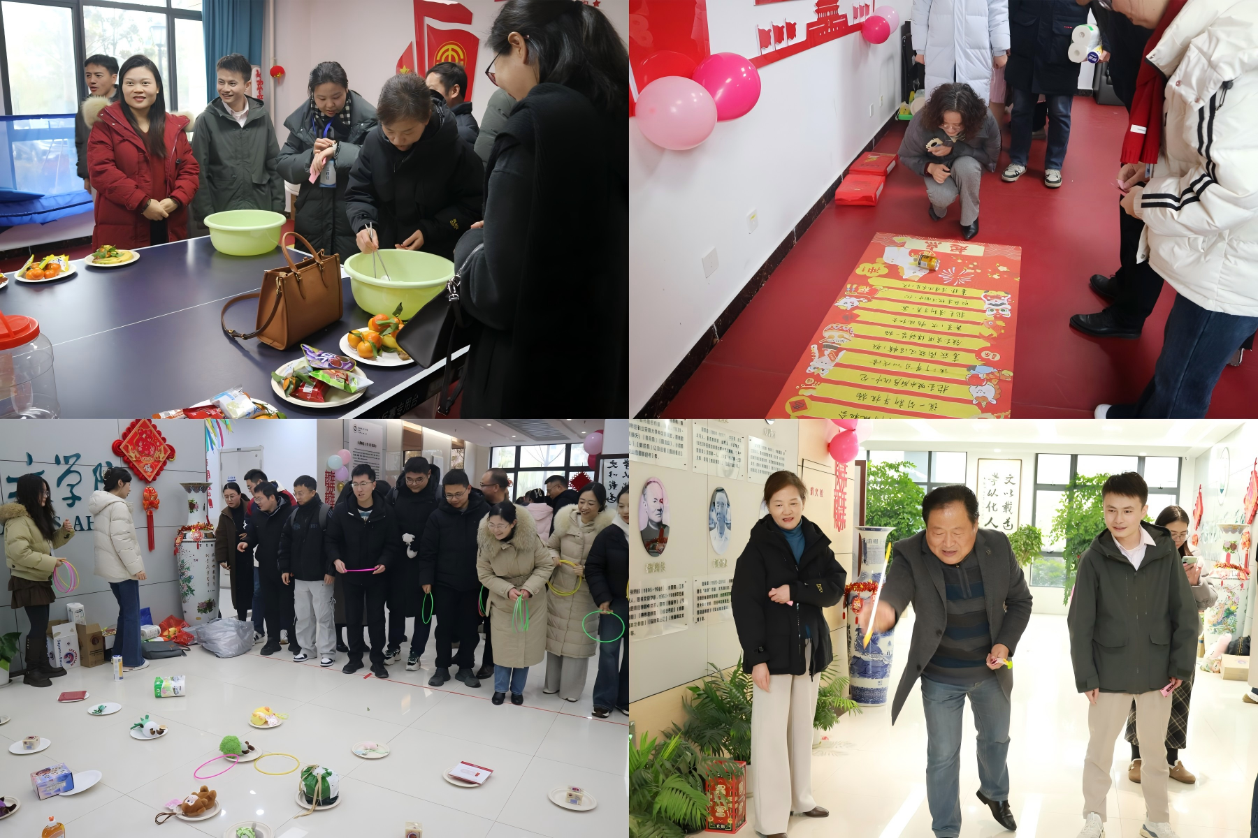 学院分工会精心策划了“投壶”“幸运圈圈乐”“好运滚滚来”“夹乒乓球”“通俗桥牌”五项活动。活动现场气氛高涨,洋溢着欢声笑语。“投壶”环节,老师们兴致盎然,各显身手,相互分享投壶技巧,赢得比赛。“幸运圈圈乐”环节,老师和小朋友们熟练地抛圈,接连将喜爱的礼物收入囊中,喝彩声不绝于耳。“好运滚滚来”活动,老师们滚动易拉罐,获得对应的奖品或祝福,收获新一年的好运和欢乐。“夹乒乓球”环节,老师们经过尝试后逐渐掌握诀窍,敏捷地移动乒乓球。“通俗桥牌”活动,老师们四人一组,两两一队,进行纸牌友谊赛,在切磋牌技的同时分享工作生活趣事。此次活动不仅让教职工们在繁忙工作之余放松身心,还增进了彼此间的交流与情感。活动结束后,教职工们收获了节日礼品,现场洋溢着温馨和谐的氛围。
