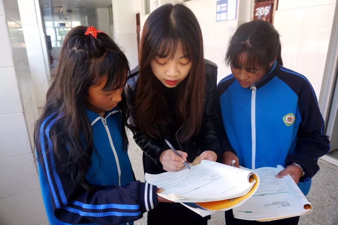 “英语教学对我来说是挑战,顶着压力,我们精心备课。”安师大公共事业管理专业的周玲燕担任普格中学高一两个班的英语教师。她介绍,高中英语知识点比较繁杂,上课难免枯燥,自己上课时会安排一些单词接龙、补全句子等活动,调节课堂气氛。