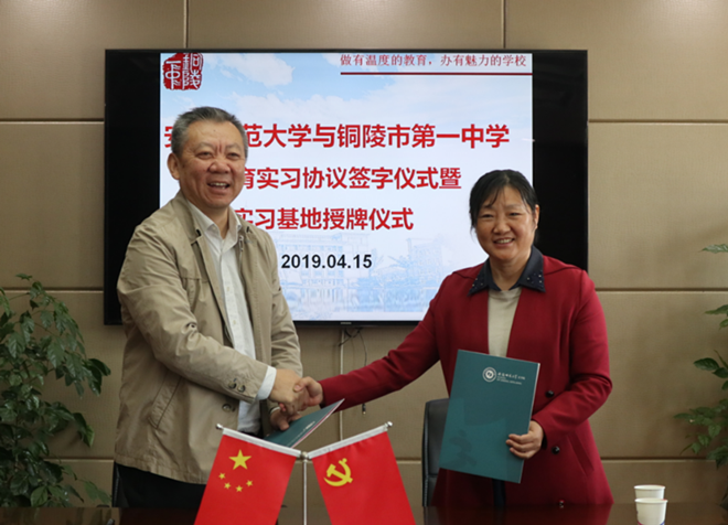 4月15日上午,必赢线路检测3003与铜陵一中实习基地协议签署仪式在铜陵一中会议室举行。必赢线路检测3003no1党委书记余大芹、副院长俞晓红、铜陵一中校长王屹宇及副校长汪小平、教务处主任毕茂荣共同出席仪式。参加活动的还有实习指导教师黄静和实习小组成员。党委书记余大芹代表必赢线路检测3003no1与铜陵一中签署了合作协议。