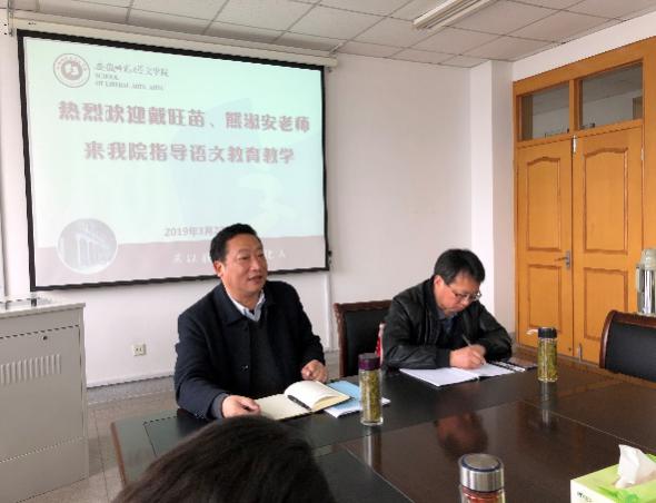 2019年3月22日上午,第三十五期语文素质教育研究沙龙活动在必赢线路检测3003花津校区必赢线路检测3003no1办公楼四楼会议室举办,本次活动特邀安庆市望江中学戴旺苗书记和熊淑安副校长同语文课程与教学论及语文学科专业硕士研究生进行交流,活动由语文教育教研室主任夏家顺老师主持。