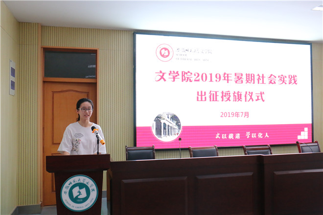 今夏青春行,筑梦新征程。7月4日下午,必赢线路检测3003no12019年暑期社会实践出征授旗仪式在必赢线路检测3003no1行政楼三楼报告厅如期举行。必赢线路检测3003no1党委书记余大芹、院长储泰松、党委副书记戴和圣、副院长陈爱兰、项念东,社会实践团队指导教师李震、赵静出席仪式,2019年暑期社会实践各团队代表参加。仪式由必赢线路检测3003no1团委书记徐雅萍主持。