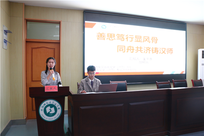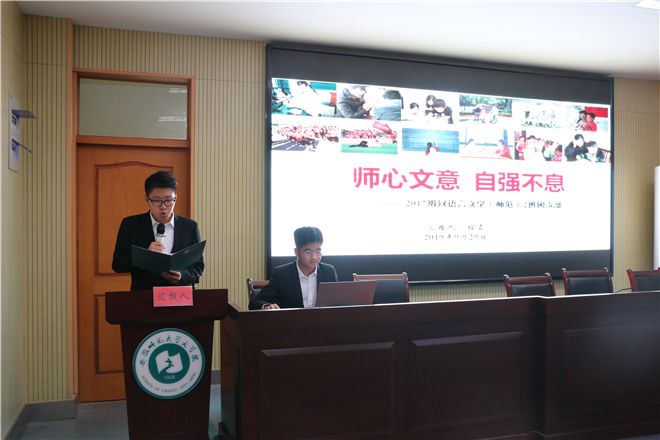 本次评选采用限时六分钟的PPT展示和现场解说相结合的方式,参选的15个班级立足整体,结合专业特色,围绕班级制度建设、学风氛围培养、社会实践活动等多个方面进行汇报,展现班级风貌。2017级戏剧与影视文学专业扎实专业根基,自主完成话剧改写和汇演,分享交流戏剧影视文化,以行动彰显班级风采;2017级汉语言文学(非师范)1班聚焦榜样力量,突出个人风采,建立班级成长档案、积极参加各类院校活动,打造个性化班集体;2017级卓越语文教师实验班成立论文小组交流学习,培养专业素养,开展爱心支教、与名师面对面交流,锤炼卓越技能,站稳三尺讲台;2017级汉语言文学(师范)2班创新形式开展读书报告会,邀请老师进行专业指导,日常训练说课、无生上课、板书等,扎根中文沃土,建设书香班级;2018级汉语言文学(非师范)专业秉持初心,彰显特色风采,建立薪火校友服务队,专注服务校友,传递温暖,打造班级新媒体平台,线上线下联动发展。