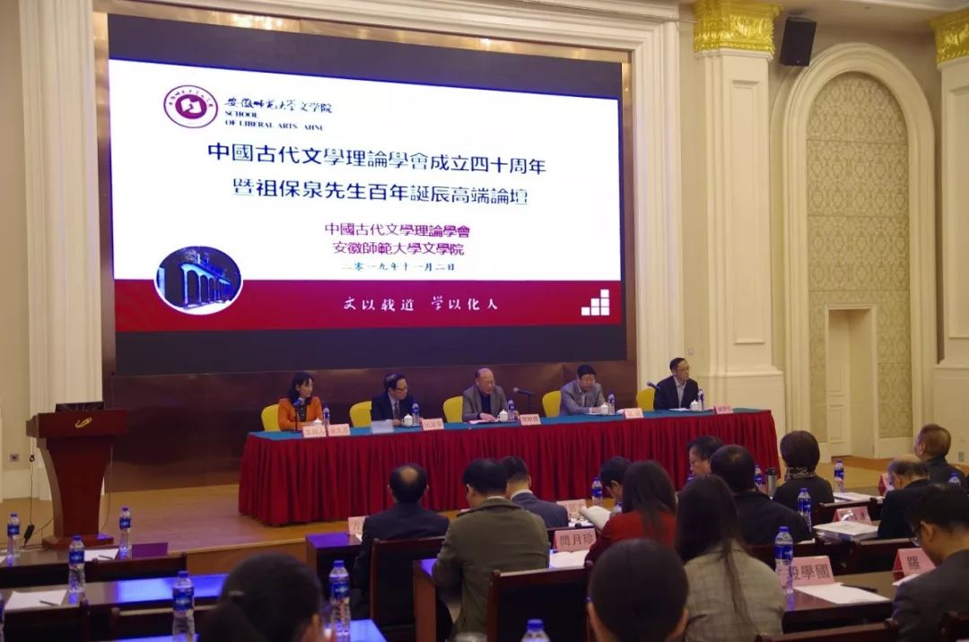 本网讯(必赢线路检测3003no1科研办)2019年11月1日至3日,中国古代文学理论学会、必赢线路检测3003no1主办的“中国古代文学理论学会成立四十周年暨祖保泉先生百年诞辰高端论坛”在芜湖碧桂园酒店成功举行。来自全国各地不同高校与科研机构的50余位中国文论界专家学者汇聚一堂,隆重庆祝中国古代文学理论学会成立四十周年,深切缅怀我院已故教授、文艺理论家祖保泉先生(1921-2013)。