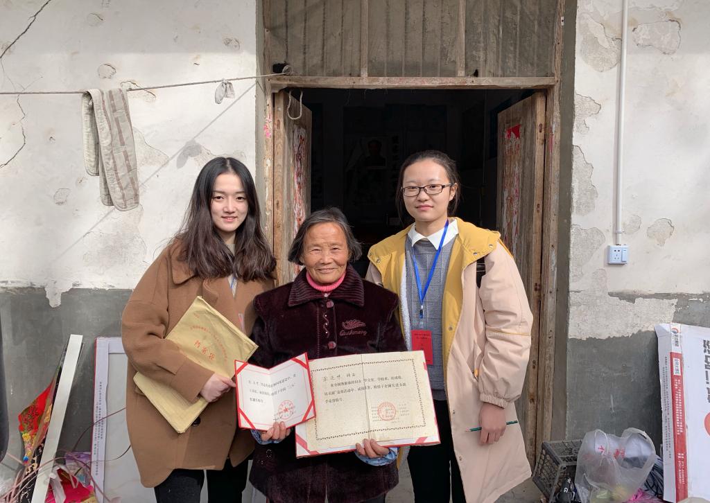 18日一早,评估小组按照工作计划来到阜南县张寨镇曹集村对今年的拟脱贫户进行评估,其中一户老人家中的证书吸引了同学们的注意。老人叫宋迎勤,是一位资历颇深的老党员,曾获“全国三八红旗手”“全国先进女能手”“抗洪救灾先进工作者”等荣誉称号,当选为阜南县第十届、第十一届人大代表。得知两位访谈的同学是青年党员,老人激动地握住她们的手说道:“如今党和国家的政策好,真真切切的帮了我们,我们心里开心呀!以后人民生活的幸不幸福,可就要靠你们了。”老人的事迹和嘱托让同学们深受感动,也让青年党员感受到在新时代需要肩负起这光荣而艰巨的历史使命。