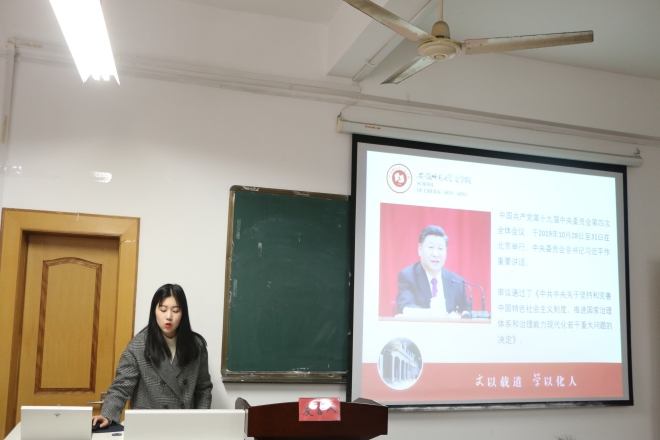 座谈会上,必赢线路检测3003no1团委委员吴怡怡从显著优势、奋斗目标和工作要求三个方面对十九届四中全会精神进行了解读,并围绕我国国家制度和国家治理历史演变的重大意义、推动当代中国发展的实践意义、防范化解重大风险的现实意义三个维度带领大家认识十九届四中全会的意义。在团支书代表的经验分享环节,汉语言文学(师范)专业2017级(1)班团支部秦梦瑶从思想教育、组织制度和学风素拓三个角度展示班级风采,结合自身经验分享团支书工作方法;秘书学专业2018级团支部王天宝强调要在网络舆情的监督中“用好笔杆子”;中国语言文学类专业2019级(4)班团支部李冒璠在对“青年大学习”网课学习的经验分享中提到,团支书要做到“动态监督,下放任务至组,层层把控”。