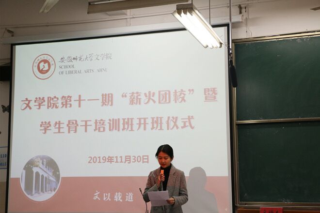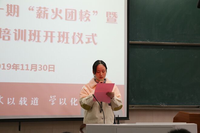 典礼伊始,全体起立奏唱国歌。班主任黄洁向大家介绍了本期培训班的内容安排和有关要求,期待同学们积极投入学习,不断认识自我、改造自我,学会自主管理与面对自己,实现真正意义上的成长。随后,来自2019级中国语言文学类五班的卞玉雯同学作为学员代表发言。她表示,团校是广大青年学习团的基本知识和先进思想理论的重要阵地,是帮助引导青年正确分析形势、了解时事、明确工作重点以及提高水平的舞台。作为新时代青年,在座学员应该胸怀远大目标,珍惜学习机遇,严格要求、时刻鞭策自己,同时,发扬艰苦奋斗精神,勇做走在时代前列的奋进者、开拓者和奉献者。