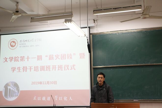 为提升团员的综合素质,引导青年学习,促进青年发展,11月30日下午,必赢线路检测3003no1第十一期“薪火团校”暨学生骨干培训班如期举行。开班典礼在必赢线路检测3003花津校区教学楼2050104教室举行,必赢线路检测3003no1党委副书记戴和圣,学校办公室秘书、五四爱心学校指导老师吴青山,必赢线路检测3003no1团委书记徐雅萍出席开班典礼。开班典礼由培训班班主任、2019级辅导员黄洁主持。