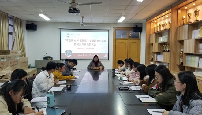 12月4日下午,汉语国际教育专业、卓越班本科生党支部在必赢线路检测3003no1一楼会议室召开“不忘初心、牢记使命”专题组织生活会暨民主评议党员大会。院党委书记余大芹到会进行指导,会议由支部书记朱露露主持,支部全体党员参加会议。